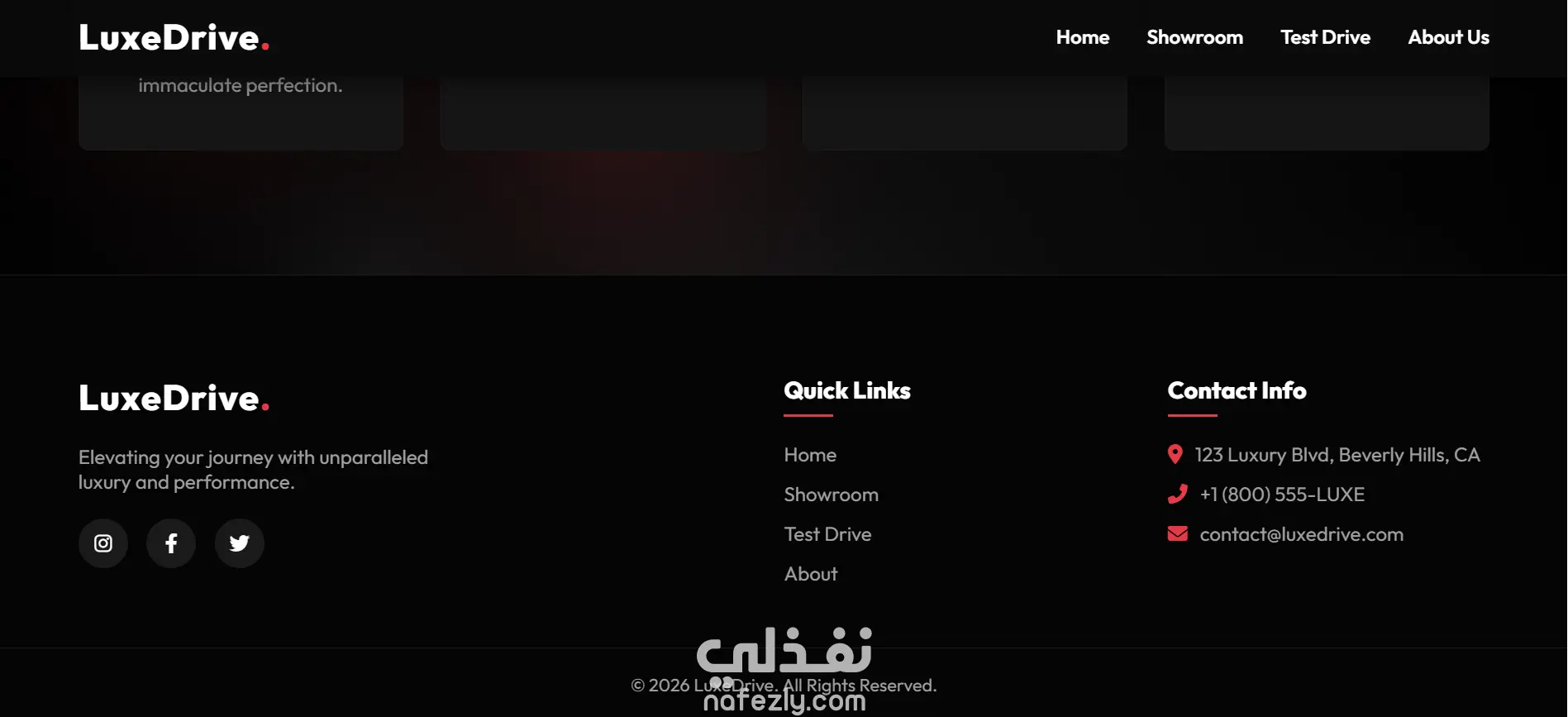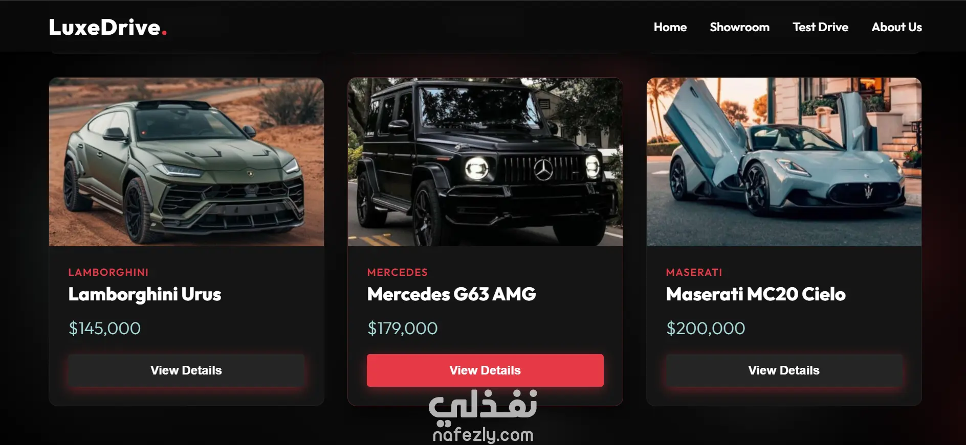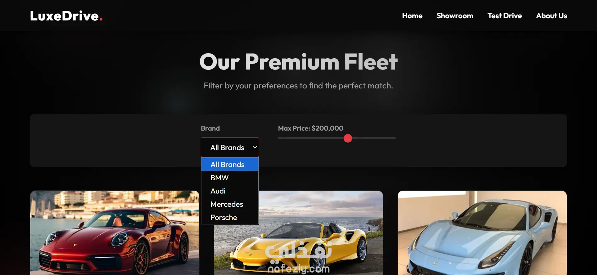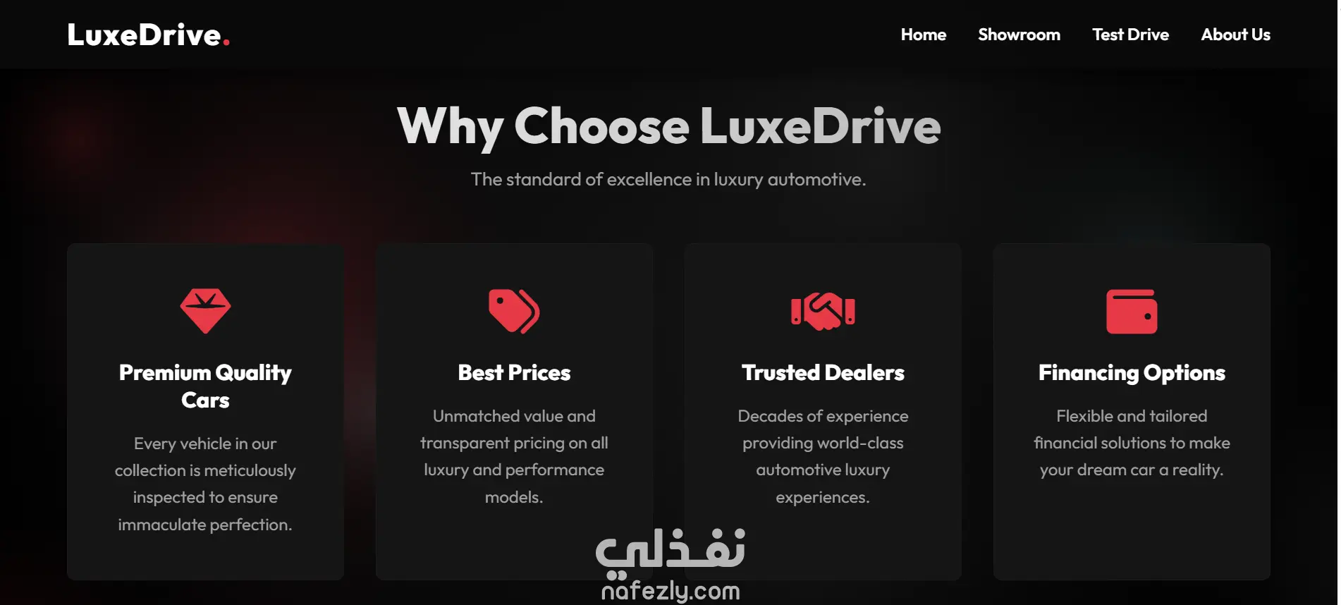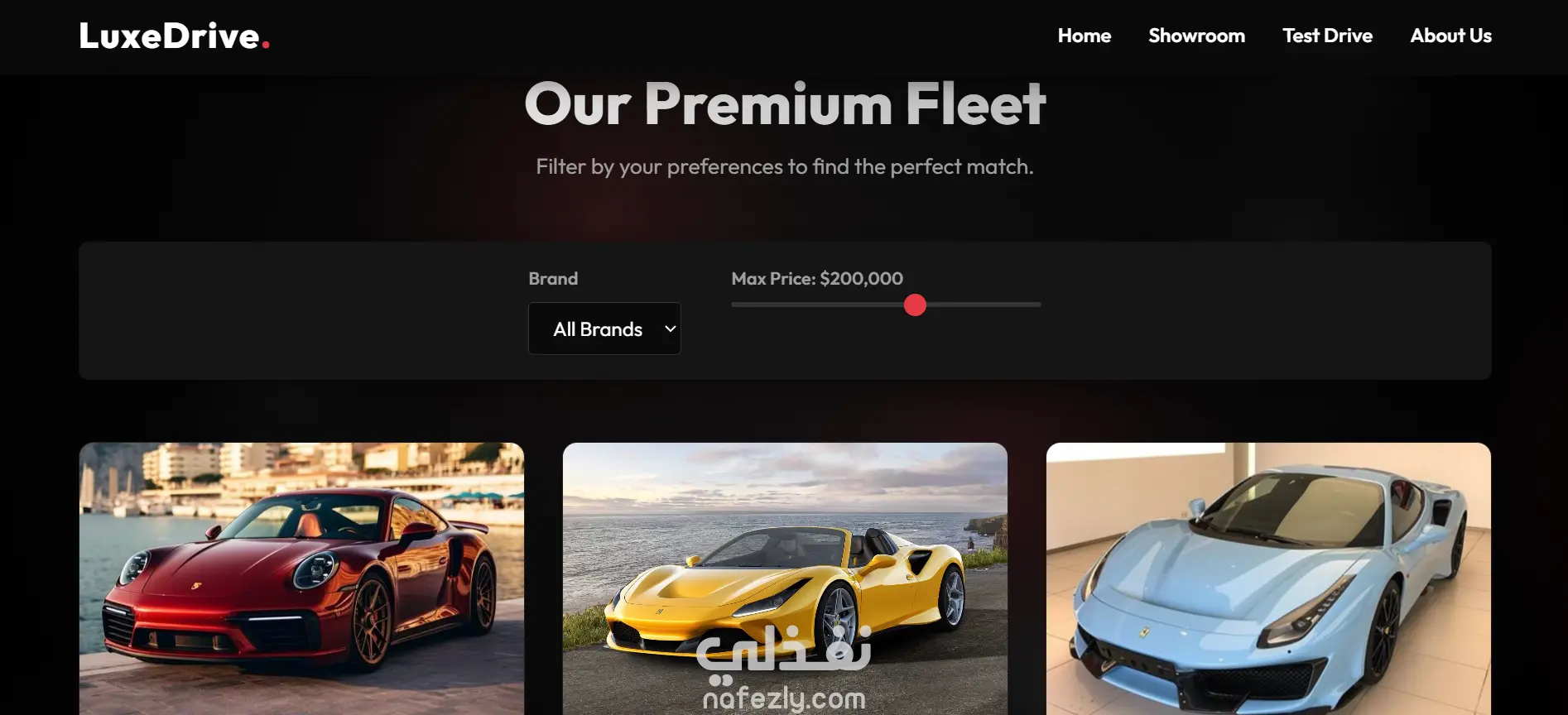 صفحة هبوط حديثة مصممة لشركة بيع سيارات، تعرض مجموعة متنوعة من السيارات بطريقة جذابة وسهلة التصفح. يتيح الموقع للمستخدمين استكشاف السيارات المختلفة والتعرف على تفاصيلها واختيار السيارة المناسبة لهم بسهولة.
