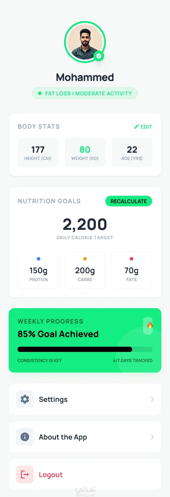 Nutri Track هو تطبيق موبايل متخصص في التغذية وإدارة الأنظمة الغذائية، تم تطويره باستخدام Flutter، ويهدف إلى مساعدة المستخدمين على تحقيق أهدافهم الصحية بطريقة عملية وسهلة. يقوم التطبيق بتحليل بيانات المستخدم مثل الطول، الوزن، والنشاط اليومي، ثم يحسب السعرات الحرارية والـ macronutrients المناسبة سواء للحفاظ على الوزن أو خسارته. ما يميز Nutri Track عن التطبيقات التقليدية هو أنه لا يكتفي بعرض الأرقام فقط، بل يقدم تجربة متكاملة تشمل: خطط غذائية متنوعة (مثل الكيتو، النباتي، وغيرها) وصفات جاهزة مع المكونات خطوات تحضير تفصيلية لكل وجبة نظام لتتبع الوجبات اليومية عرض السعرات والمتبقي من الـ macros بشكل لحظي يساعد التطبيق المستخدم على الانتقال من مجرد معرفة “ماذا يأكل” إلى “كيف يلتزم ويطبق ذلك فعليًا”، مما يجعله أداة عملية للاستخدام اليومي. تم التركيز في تصميم التطبيق على تقديم تجربة استخدام بسيطة وسلسة، رغم تعدد السيناريوهات والاختيارات، بحيث يتمكن المستخدم من التنقل واتخاذ قراراته بسهولة دون تعقيد.