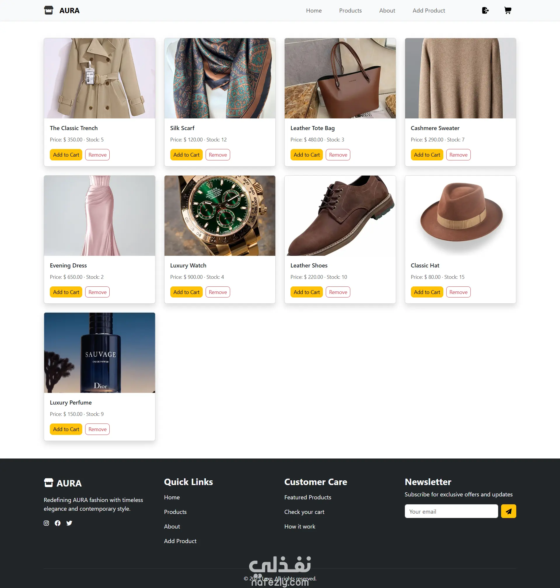 موقع تجارة إلكترونية يتيح للمستخدمين تصفح المنتجات وإضافة العناصر إلى سلة التسوق. بالإضافة إلى ذلك، يتيح للمستخدمين إنشاء حسابات شخصية محمية للوصول إلى تفاصيل الطلبات، إضافة منتجات جديدة للبيع، وإنشاء حسابات للبائعين لعرض منتجاتهم وبيعها. ميزات العمل: واجهة مستخدم سهلة: تصميم مريح يتيح للمستخدمين تصفح المنتجات والبحث عنها بسهولة. حسابات مخصصة: كل مستخدم لديه حساب خاص به للوصول إلى تفاصيله، مشترياته، وحفظ المنتجات المفضلة. إضافة منتجات للبيع: يتيح للبائعين إضافة منتجاتهم الخاصة للبيع والتعامل مع المخزون والمبيعات. حماية الحسابات: الحسابات محمية بكلمات مرور وأمان عالي للمستخدمين والبائعين. عملية سلة التسوق: يمكن للمستخدمين إضافة منتجات إلى السلة، ثم إتمام عملية الشراء بشكل سهل وآمن. طريقة التنفيذ: تم استخدام تقنيات تطوير الويب الحديثة مثل [مثال:، HTML5، CSS3، JavaScript] لبناء الموقع. تم ربط الموقع بقاعدة بيانات لتنظيم المنتجات وحسابات المستخدمين، وتم تنفيذ نظام دفع آمن لعملية الشراء.