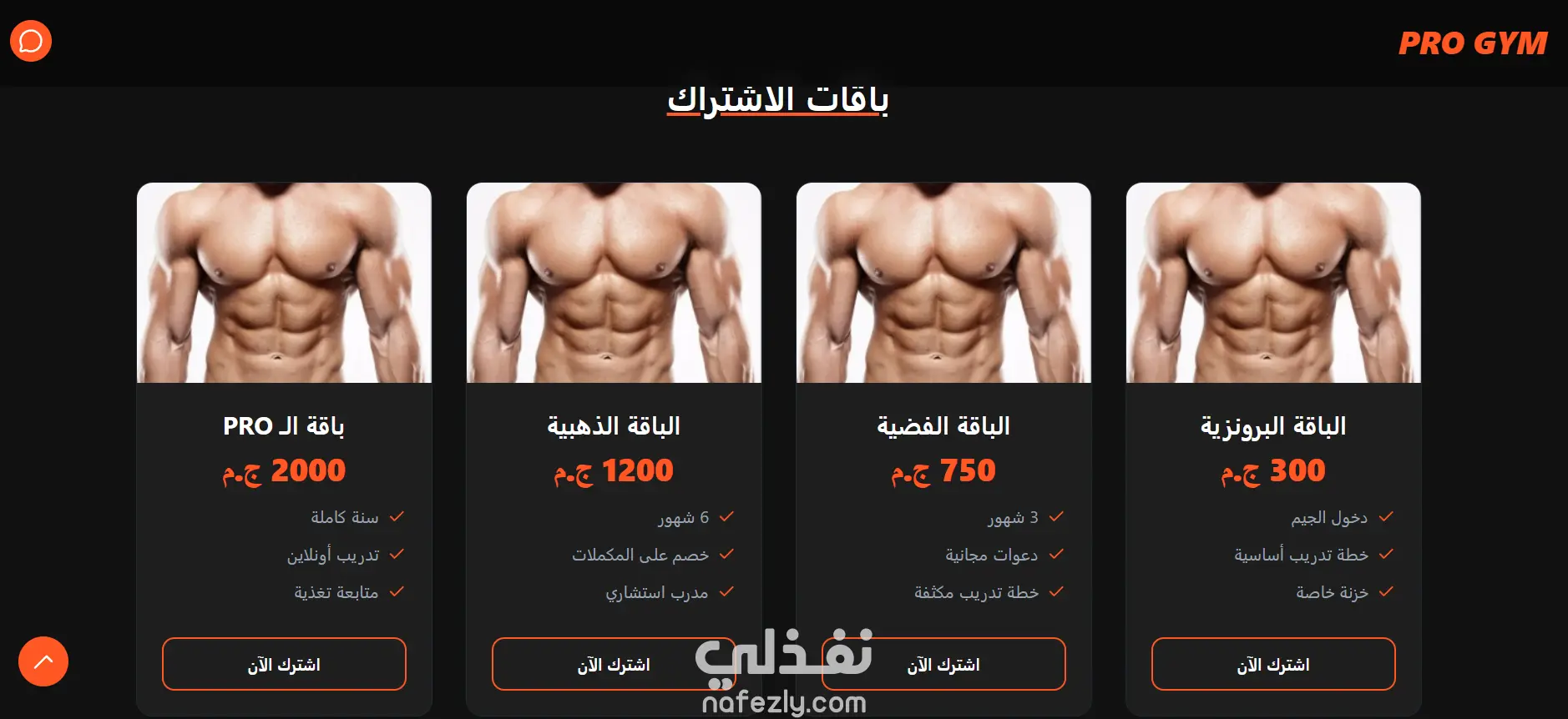 Landing Page احترافية لجيم رياضي (Pro Gym) باستخدام React
