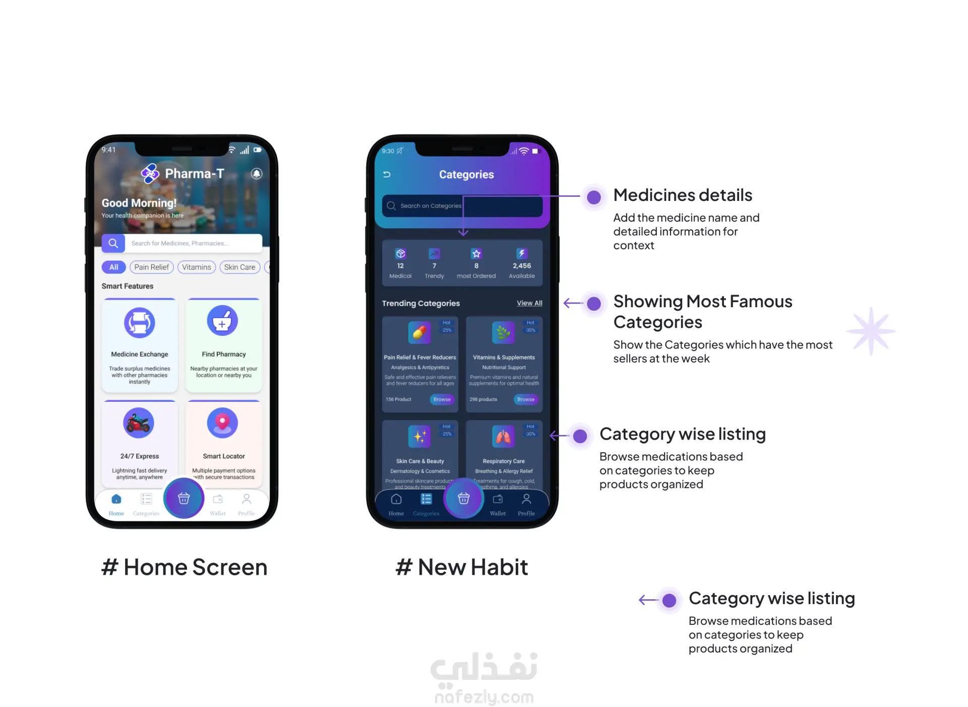 Pharma-T – تصميم UI/UX لتطبيق موبايل صيدلية رقمية