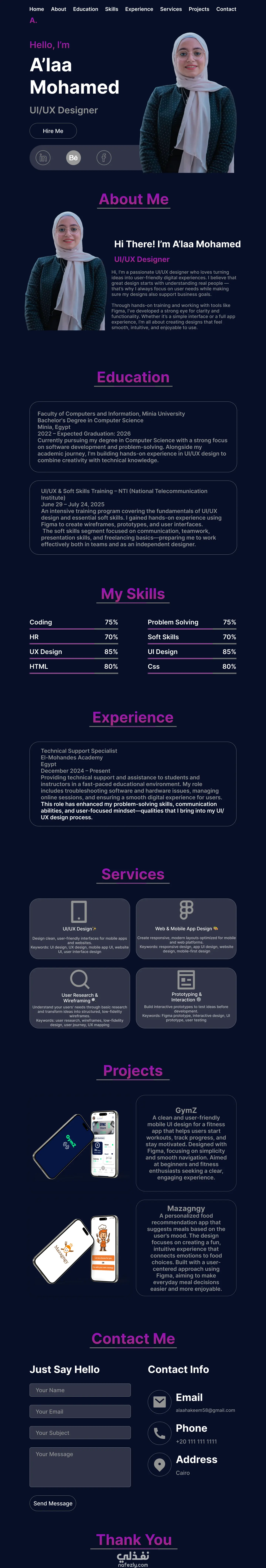 This portfolio showcases my work as a UI/UX designer, highlighting projects that focus on creating intuitive, user-friendly, and visually engaging digital experiences.