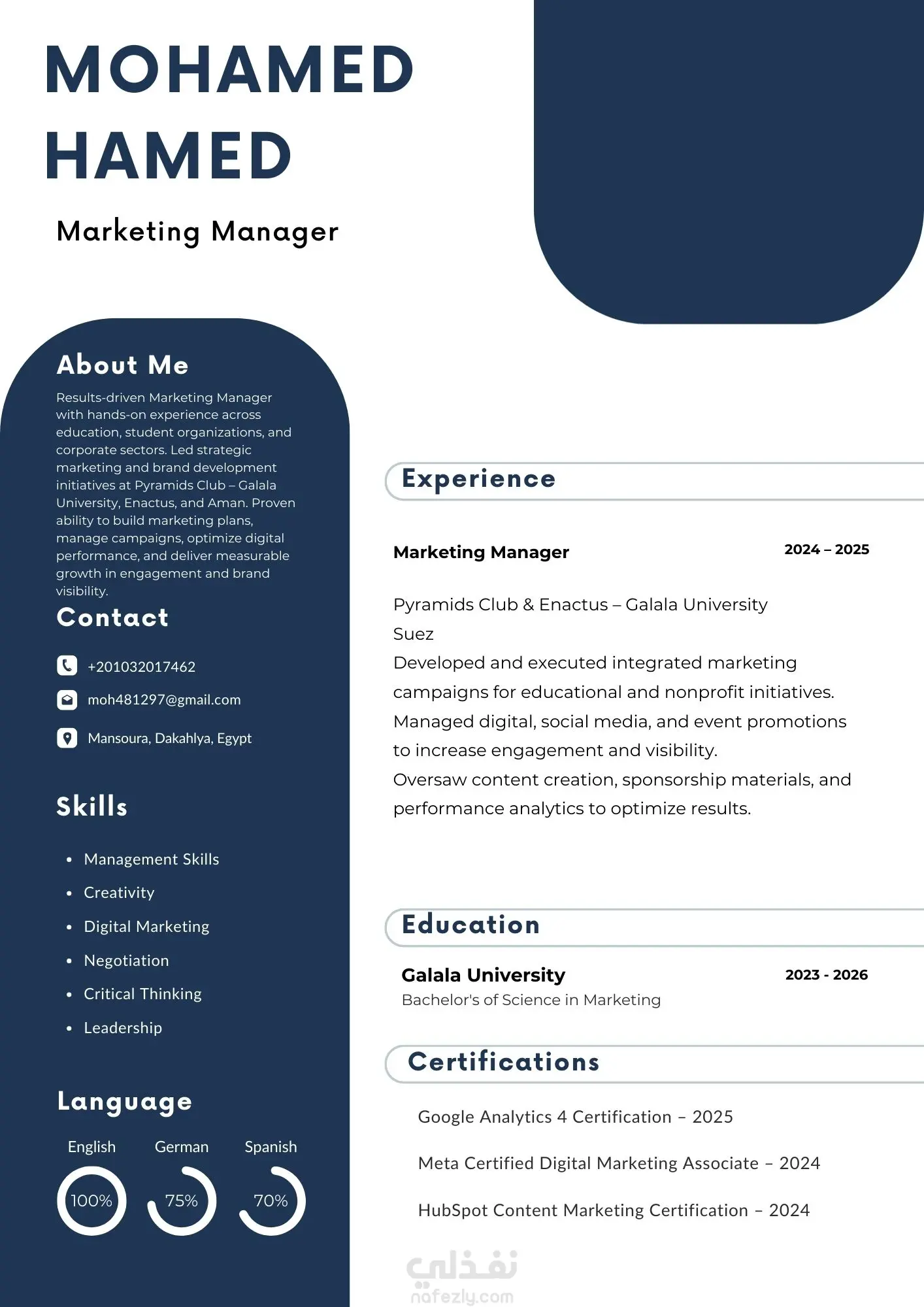 تصميم سيرة ذاتية انفوجرافيك عربي وانجليزي لأحد العملاء