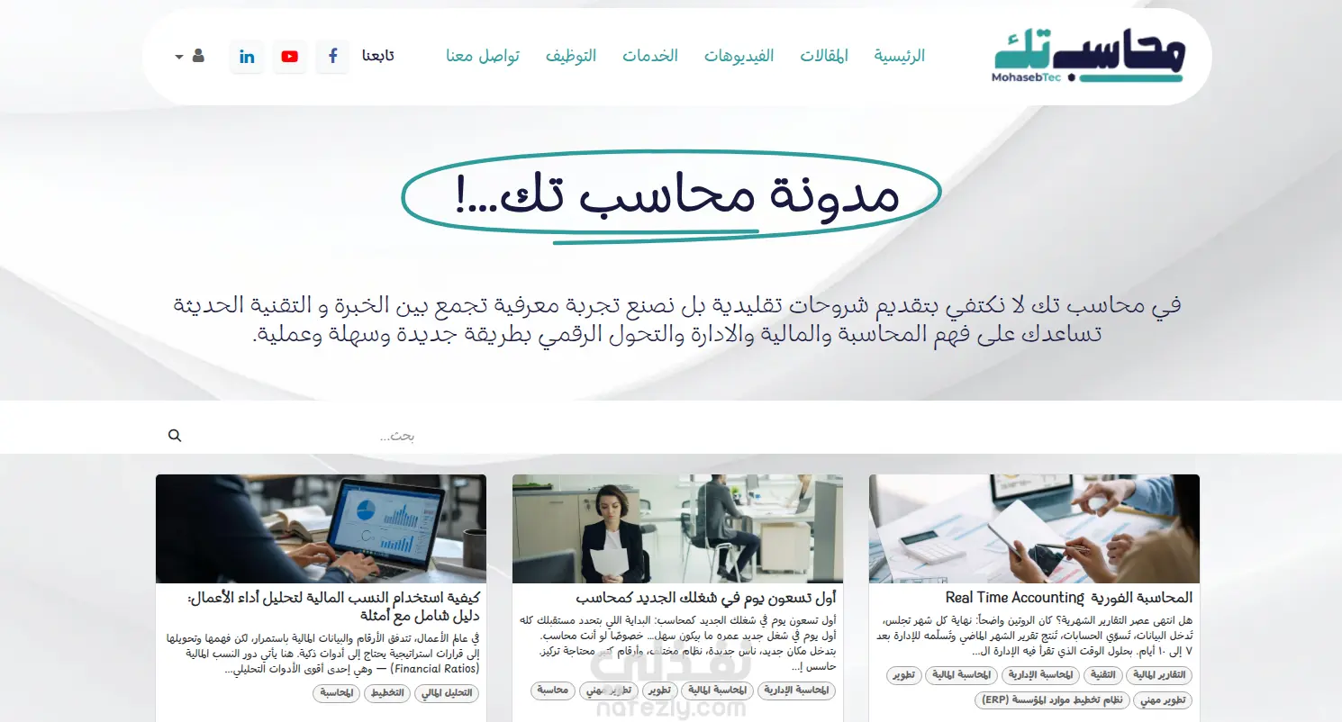 أدير وأطور مدونة محاسب تك، وهي منصة متخصصة في تقديم محتوى تعليمي ومهني في مجالات المحاسبة والتكنولوجيا المالية والتحول الرقمي للأعمال. -------------------------------------------------------------------------------------------------- محتوى المدونة يشمل: شرح مفاهيم المحاسبة الحديثة بأسلوب مبسط واحترافي مقالات حول أنظمة تخطيط موارد المؤسسات (ERP) وخاصة نظام Odoo محتوى متخصص في المحاسبة التقنية (Tech Accounting) نصائح وأدوات لإدارة الأعمال المالية بكفاءة مواضيع حول التحول الرقمي وأتمتة العمليات المالية شروحات تساعد رواد الأعمال على تحسين إدارة مشاريعهم ---------------------------------------------------------------------- هدف المدونة: نشر المعرفة المالية والتقنية بطريقة عملية وسهلة الفهم دعم أصحاب المشاريع الصغيرة والمتوسطة في تطوير أعمالهم تعزيز مفهوم الدمج بين المحاسبة والتكنولوجيا بناء محتوى عربي متخصص في مجال المحاسبة التقنية 🔗 يمكن زيارة المدونة عبر: www.mohasebtec.com