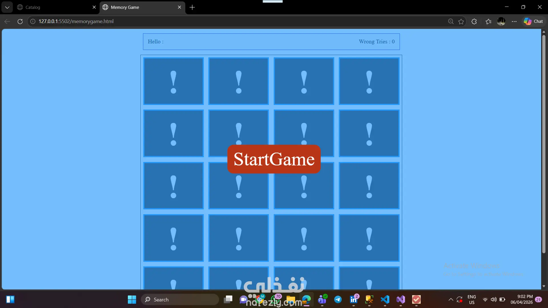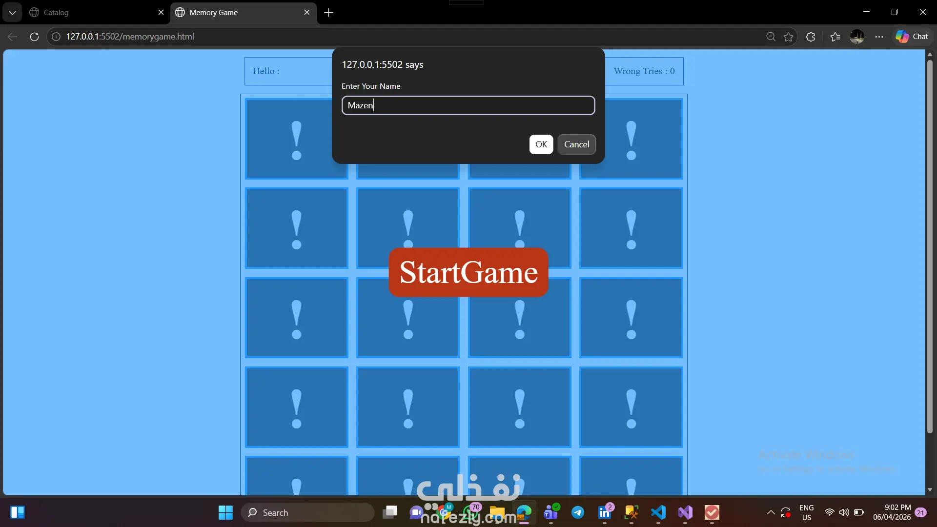 قمت بتطوير لعبة تفاعلية من نوع Memory Game باستخدام HTML و CSS و JavaScript بدون الاعتماد على أي Framework، مع التركيز على الأداء وتجربة المستخدم. تعتمد فكرة اللعبة على اختبار قوة الذاكرة من خلال مطابقة البطاقات المتشابهة في أقل وقت ممكن، مع إضافة مؤثرات بصرية لزيادة التفاعل والمتعة. 🔹 مميزات المشروع: * تصميم جذاب ومتجاوب يعمل على جميع الأجهزة * استخدام JavaScript لبناء منطق اللعبة بالكامل * نظام قلب البطاقات (Card Flip Animation) * التحقق من تطابق البطاقات (Matching Logic) * حساب عدد المحاولات أو الوقت * إعادة تشغيل اللعبة (Restart Game) * مؤثرات بصرية وتفاعلية لتحسين تجربة المستخدم 🔹 تقنيات مستخدمة: * HTML5 * CSS3 (Animations & Transitions) * JavaScript (Vanilla JS) تم تنفيذ المشروع بالكامل بدون استخدام أي مكتبات أو Frameworks لإظهار قوة التحكم في JavaScript وفهم عميق لأساسيات البرمجة. هدفي من هذا المشروع هو بناء تطبيق تفاعلي خفيف وسريع يعكس مهاراتي في تطوير واجهات المستخدم والمنطق البرمجي.