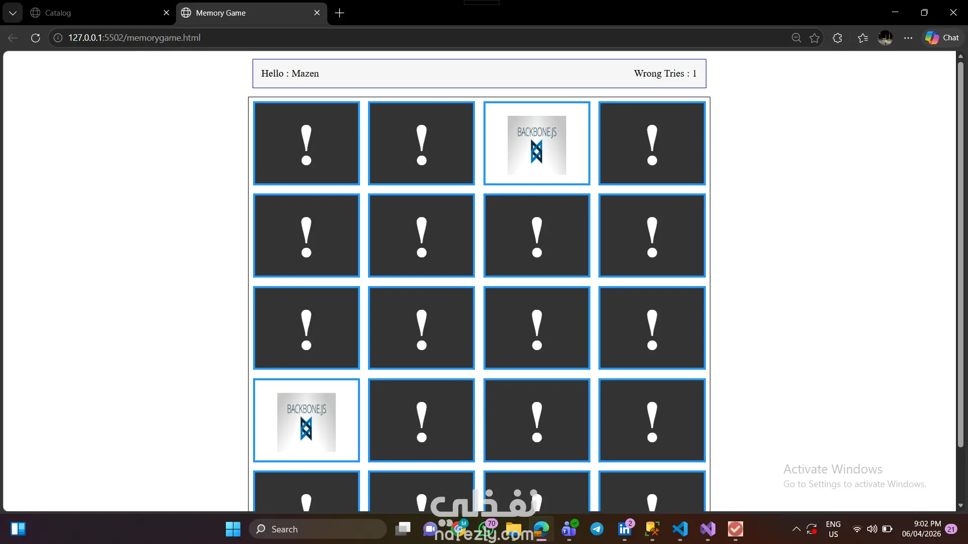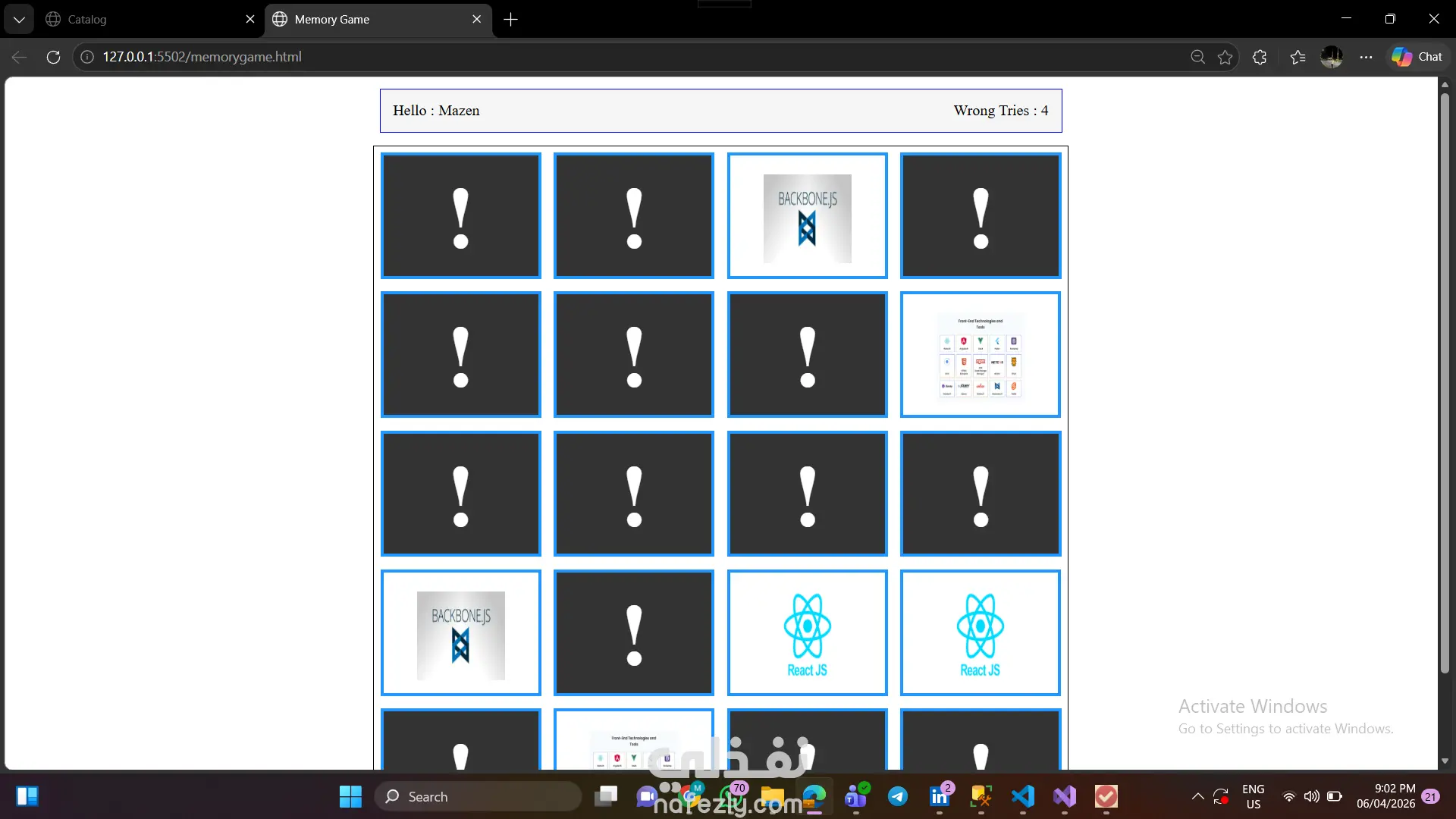 قمت بتطوير لعبة تفاعلية من نوع Memory Game باستخدام HTML و CSS و JavaScript بدون الاعتماد على أي Framework، مع التركيز على الأداء وتجربة المستخدم.