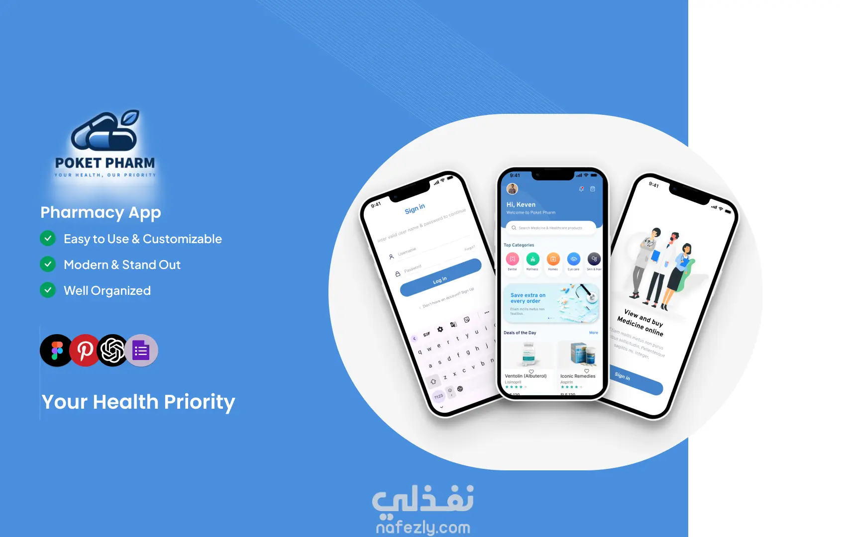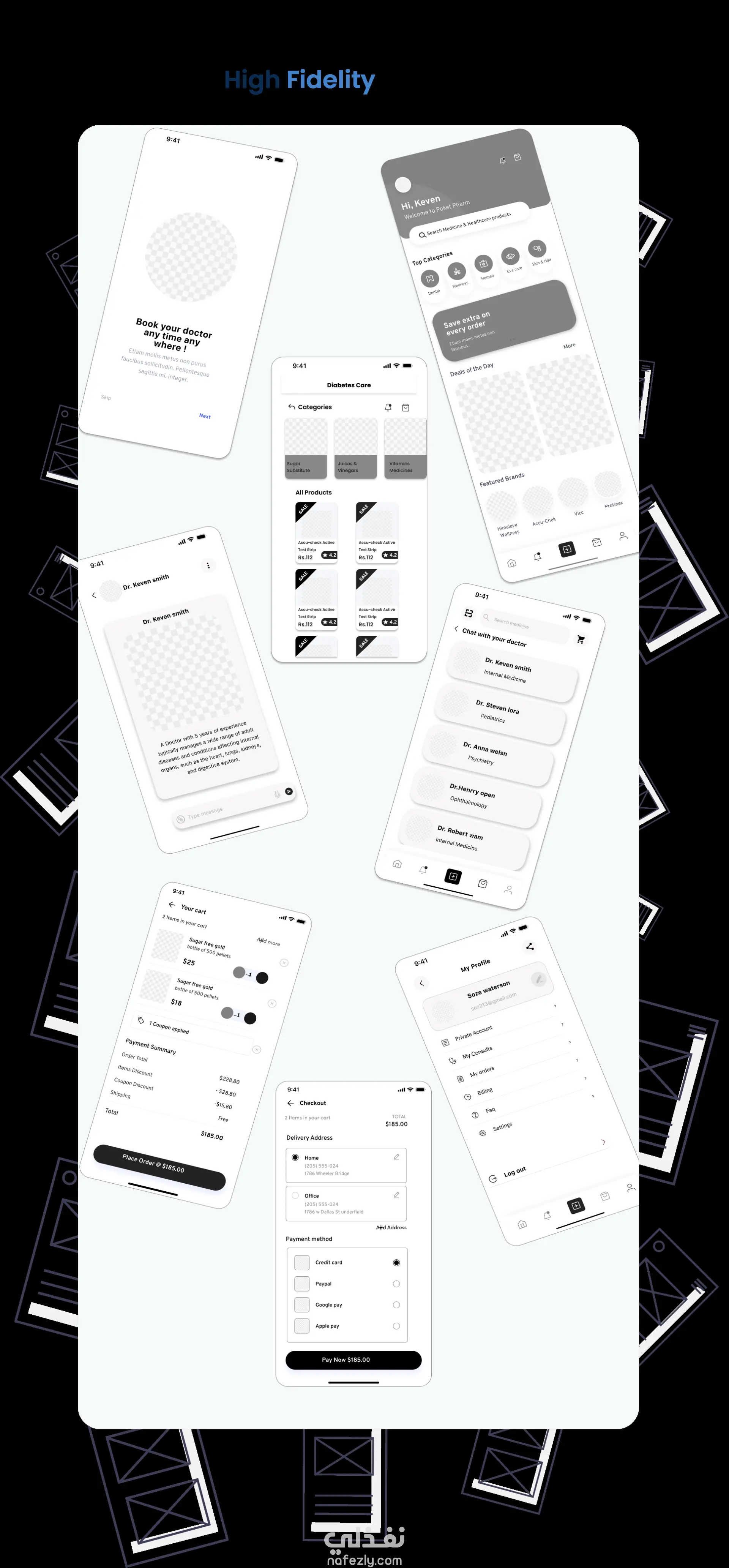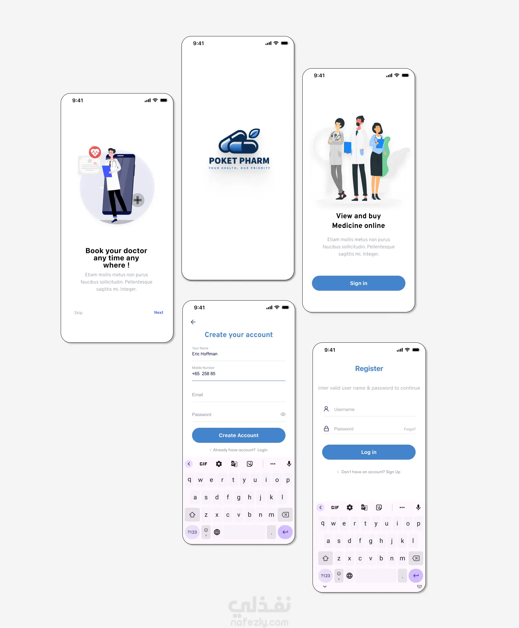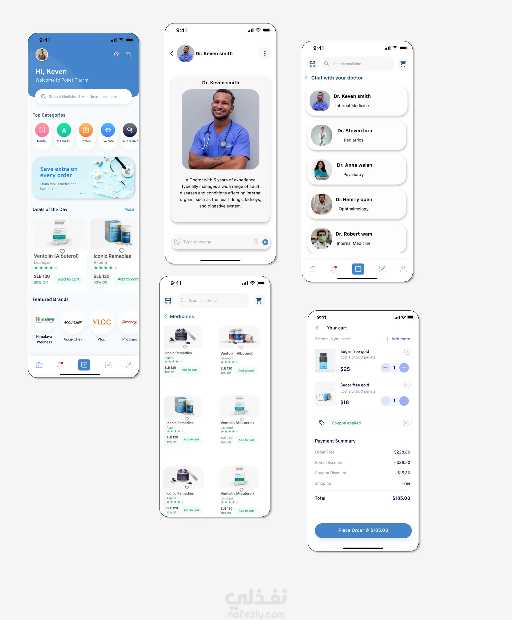 Poket Pharm - تصميم واجهة وتجربة مستخدم UI/UX لتطبيق صيدلية باستخدام (Figma)