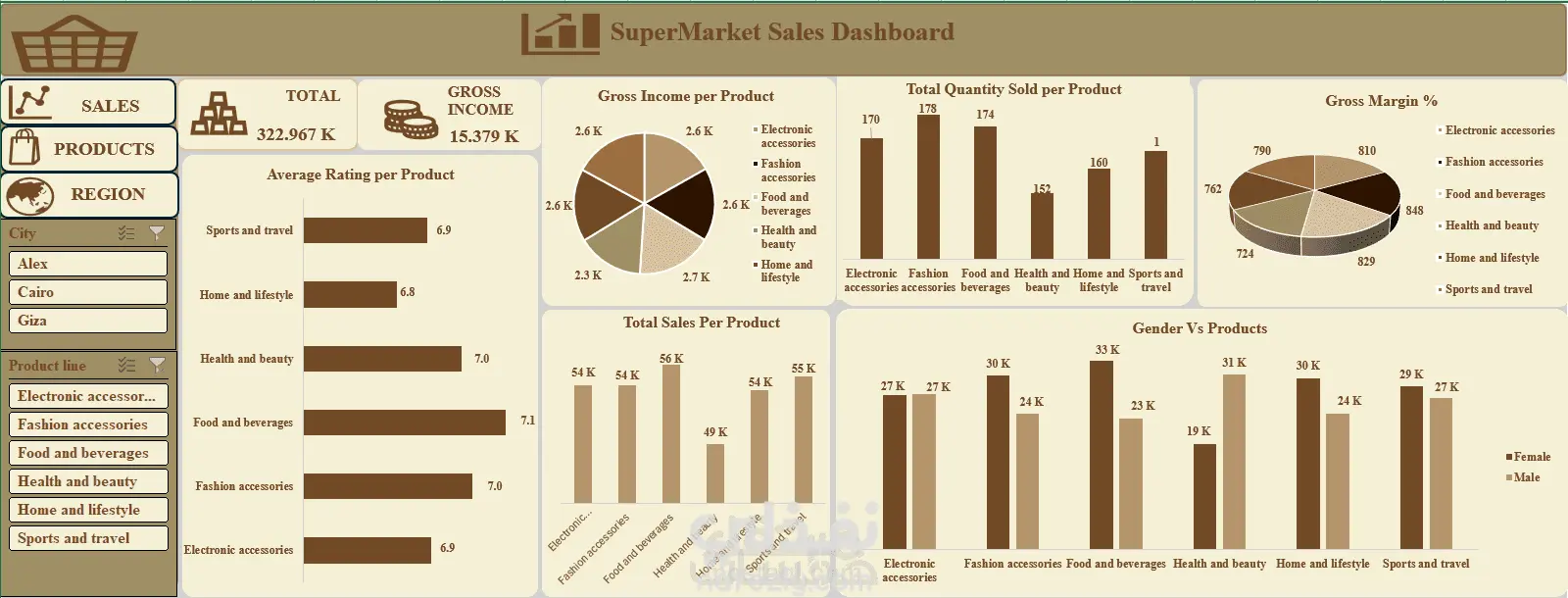 تصميم داشبورد مبيعات سوبر ماركت احترافي باستخدام Power BI / Excel