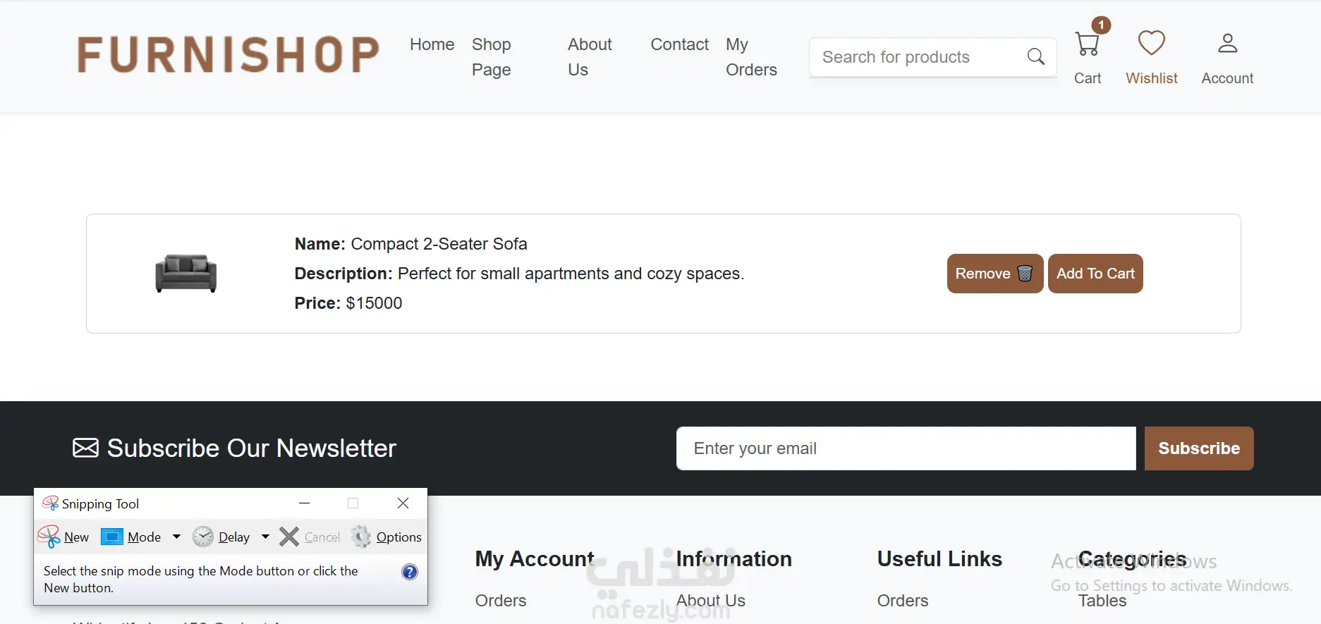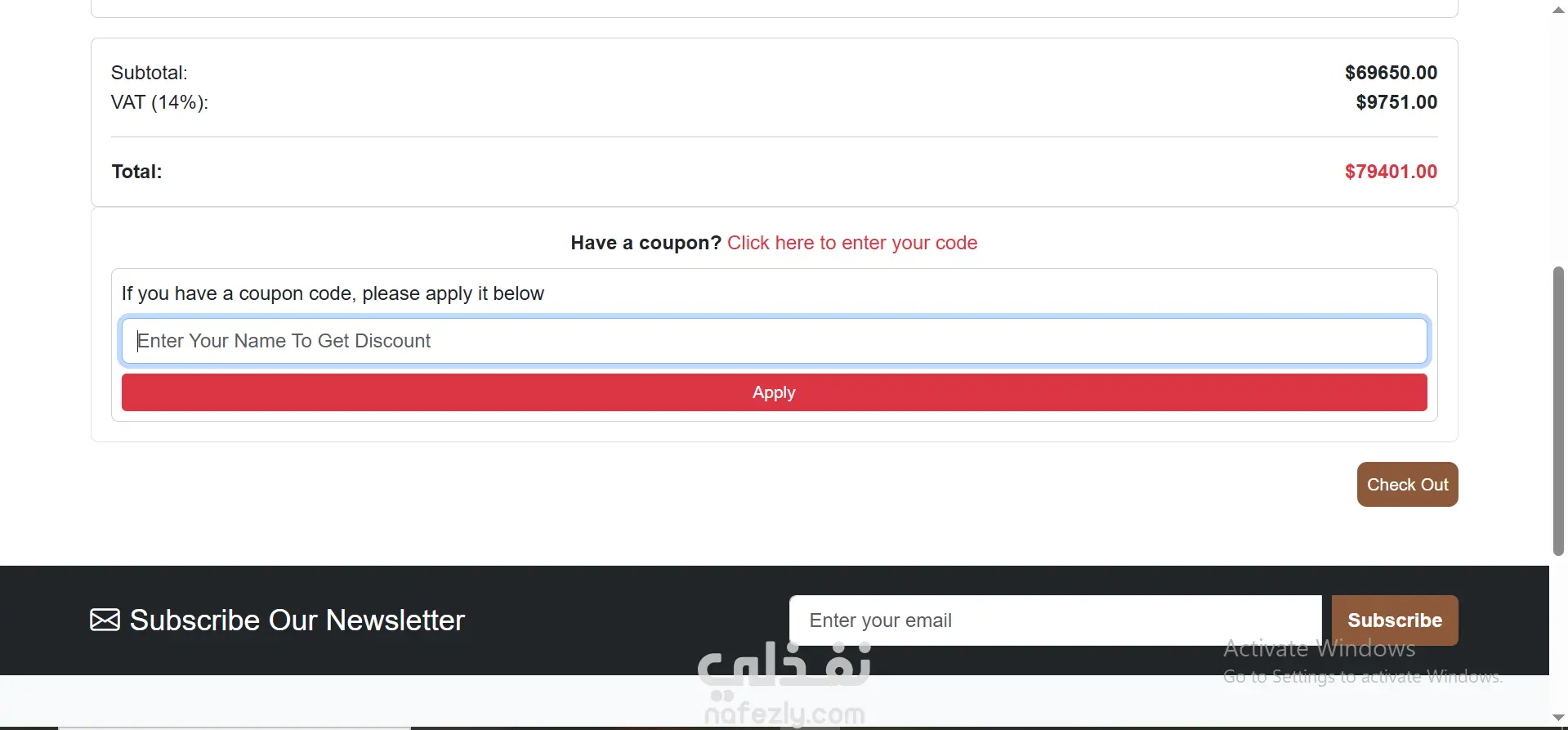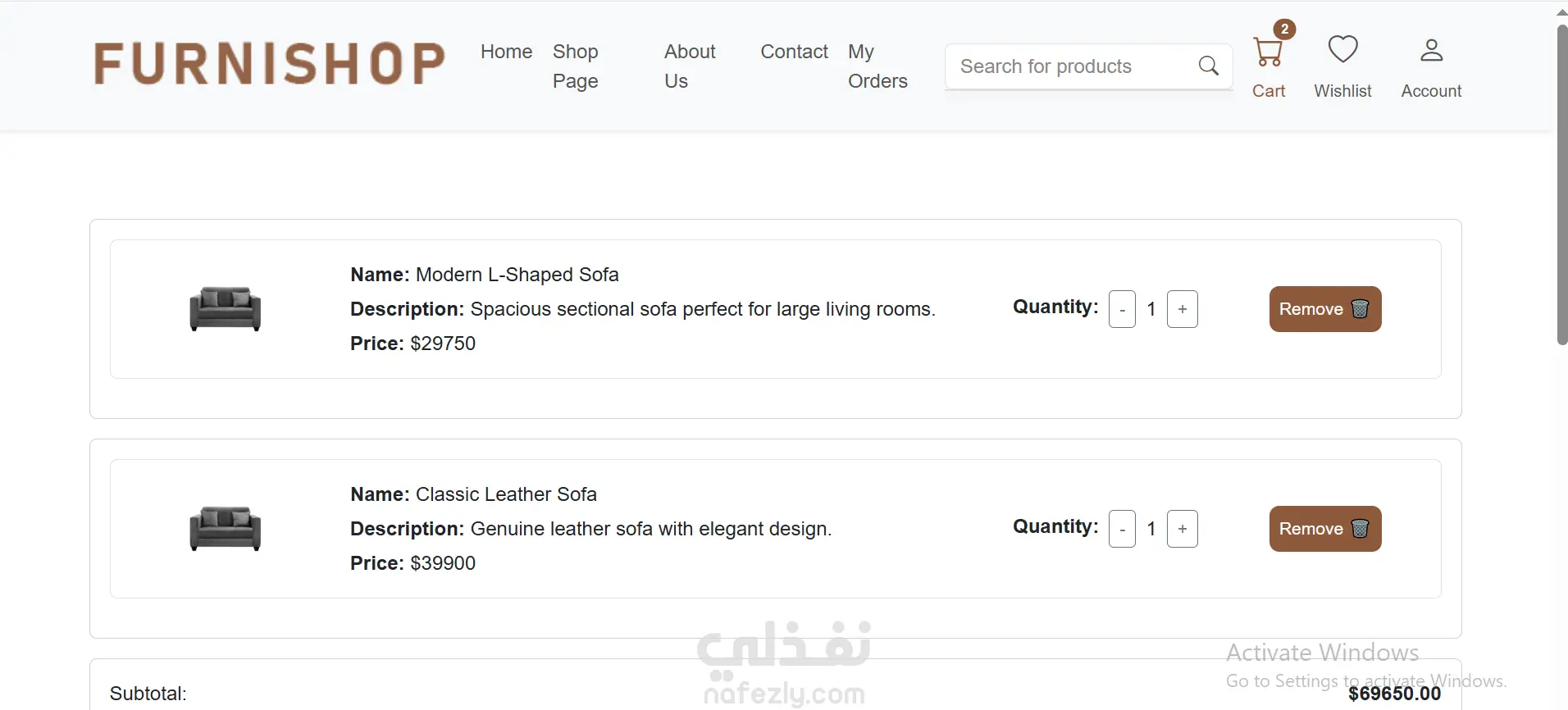 تطوير واجهة متجر إلكتروني تشمل Cart و Wishlist ونظام كوبونات