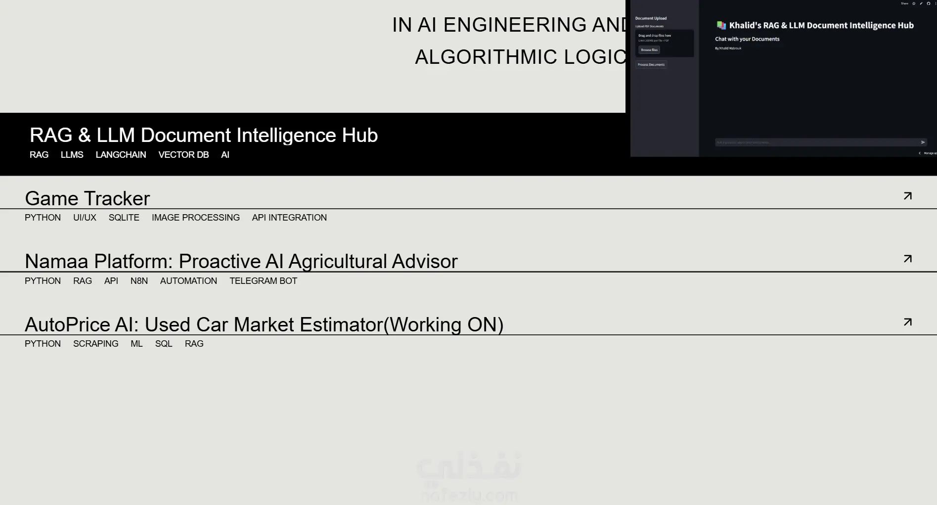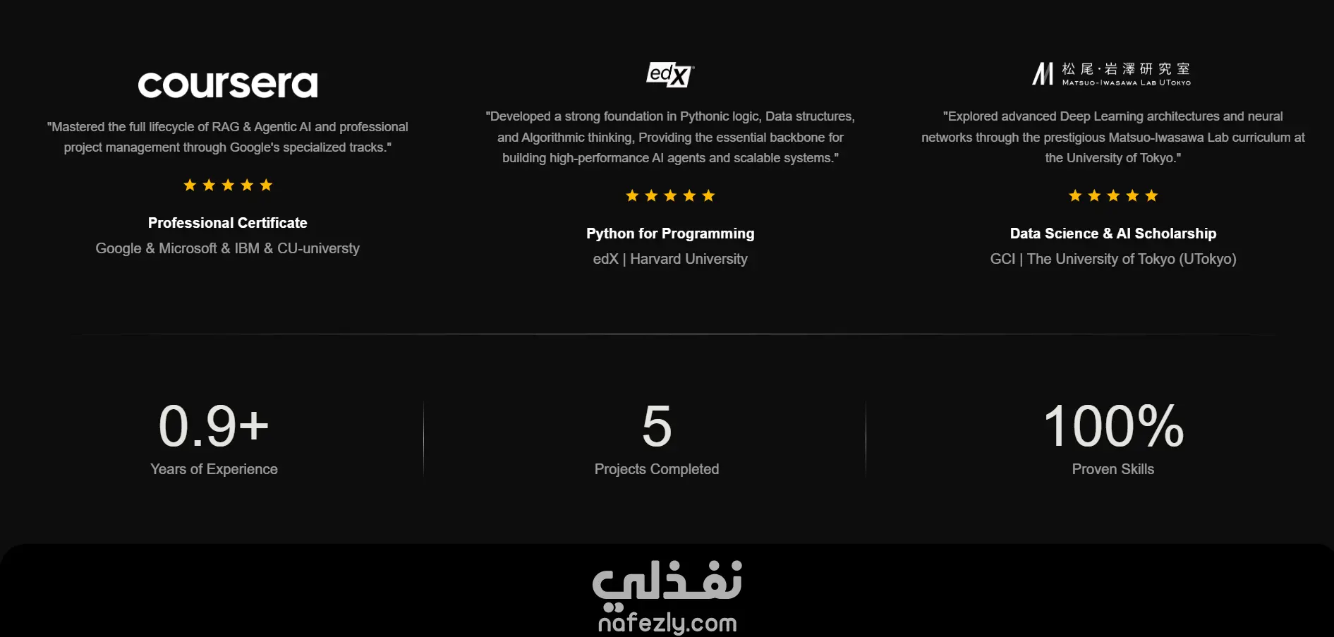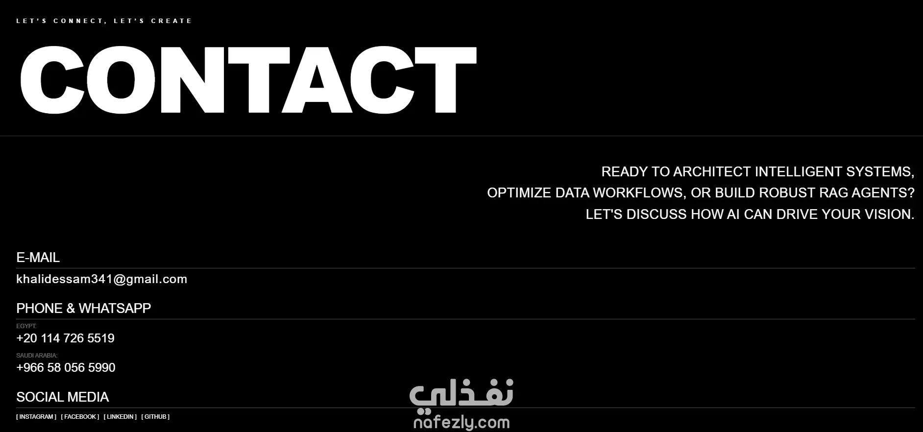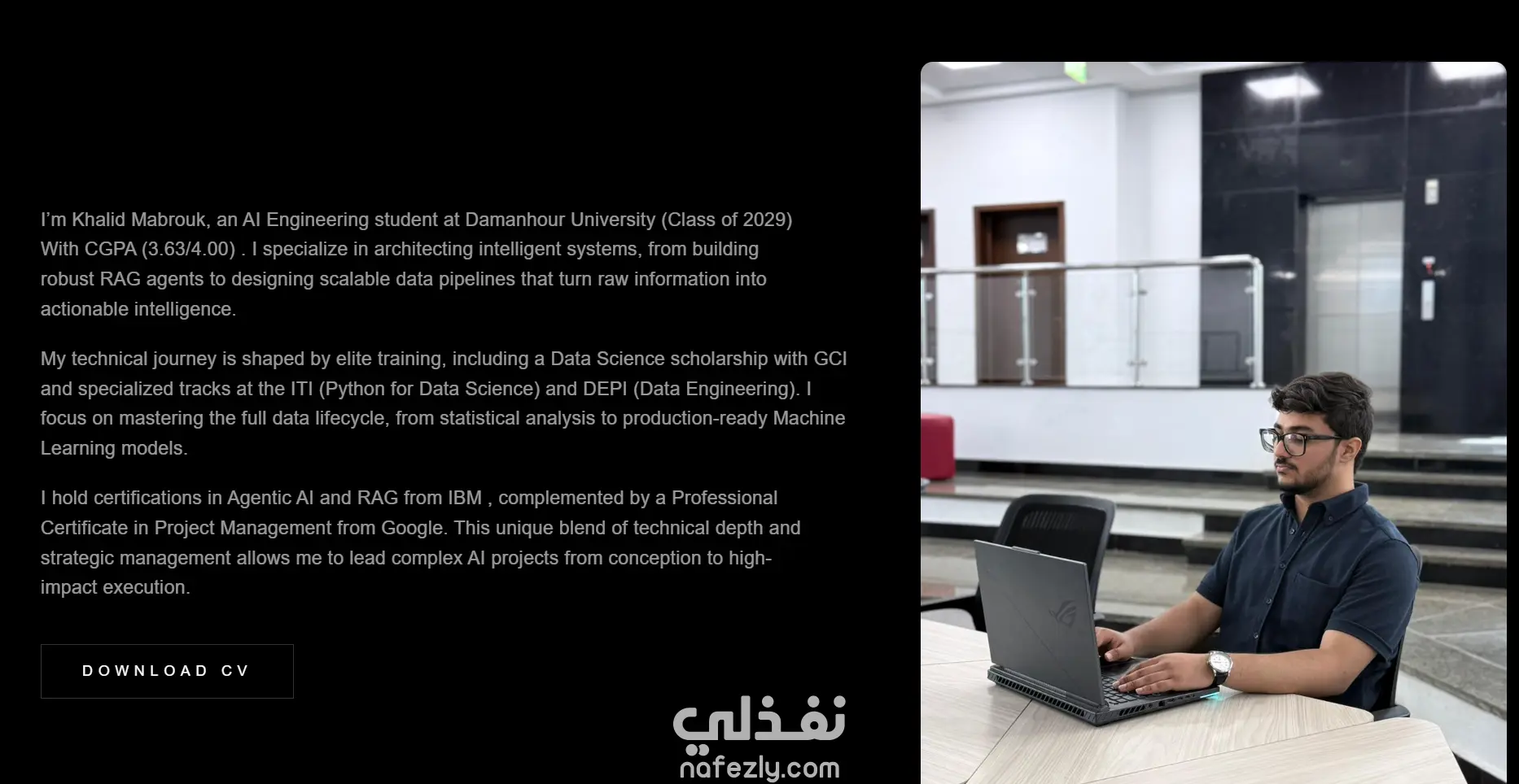 هذا المشروع عبارة عن موقع شخصي (Portfolio) قمت بتطويره بالكامل ليعكس الهوية المهنية وعرض سابقة الأعمال بشكل عصري وجذاب. تم تصميم الموقع ليكون بمثابة واجهة رقمية احترافية تستعرض المهارات والمشاريع التقنية بطريقة سلسة وسهلة التصفح. التقنيات والأدوات المستخدمة في التطوير: React: لبناء واجهة مستخدم (UI) ديناميكية وتفاعلية. Vite: لضمان أداء فائق السرعة وتجربة مستخدم سلسة. Tailwind CSS: لتنفيذ تصميم حديث، أنيق، ومتجاوب بالكامل (Fully Responsive) ليعمل بكفاءة على جميع الأجهزة والشاشات (موبايل، تابلت، ديسكتوب). أبرز مميزات الموقع: تصميم نظيف يركز على تجربة المستخدم (UX). سرعة تحميل عالية بفضل استخدام Vite. هيكلة واضحة للأقسام (عني، المهارات، المشاريع، طرق التواصل). هذا المشروع يعكس قدرتي على تحويل الأفكار والتصاميم إلى مواقع ويب حية وعالية الأداء باستخدام أحدث تقنيات الـ Front-end.