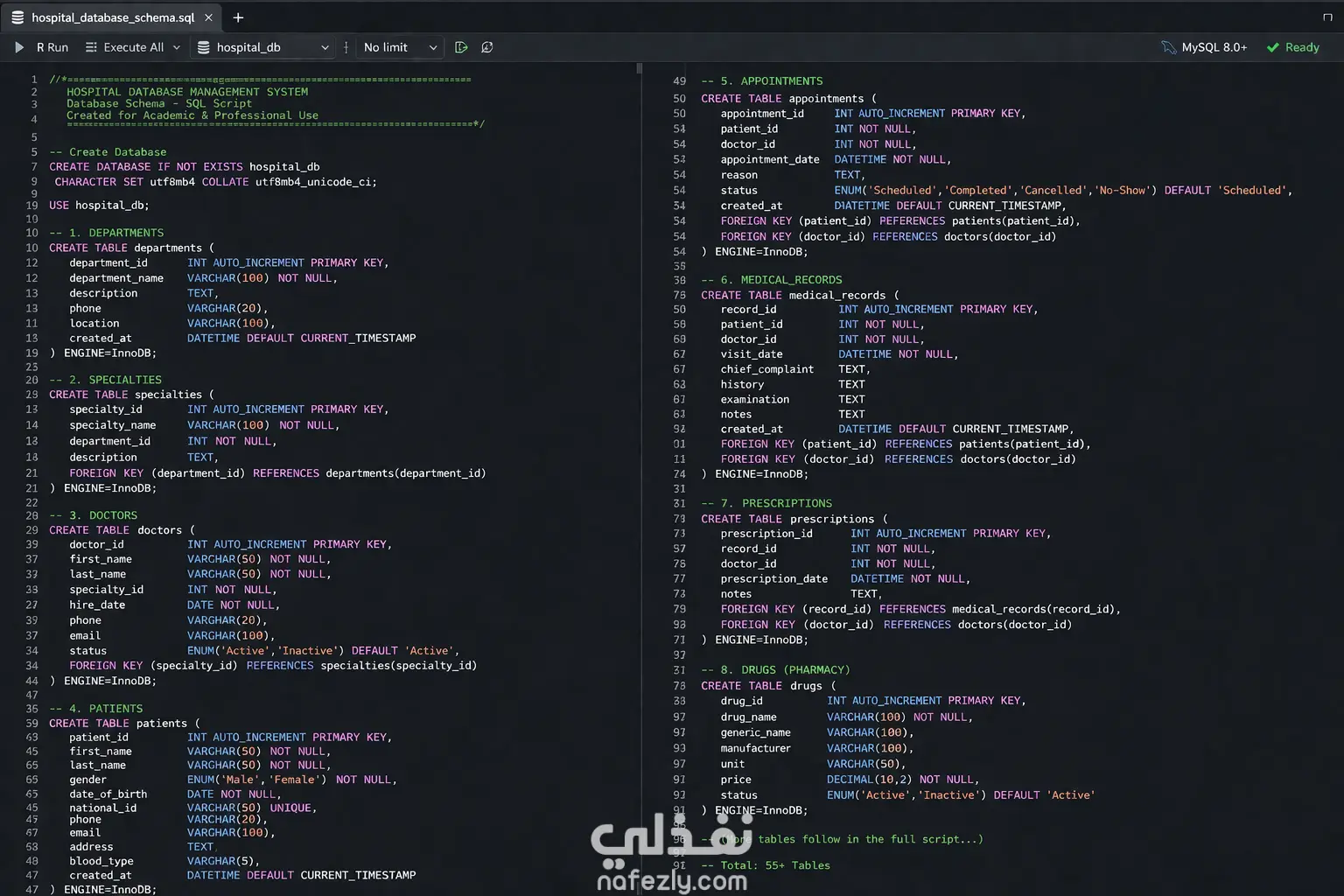 تصميم قاعدة بيانات متكاملة لإدارة المستشفيات (Hospital Database Management System)