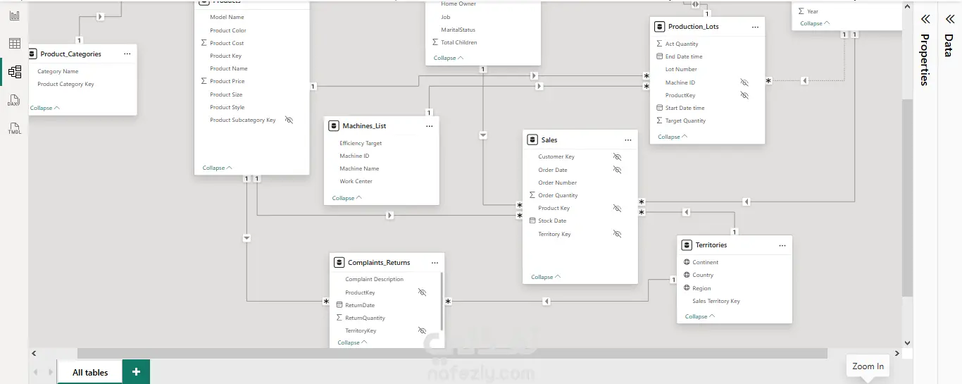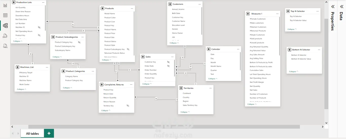 تشمل الخدمة: بناء نموذج بيانات علائقي يربط جميع مصادرك، تحليل المبيعات والعملاء والمنتجات والعمليات، إنشاء مؤشرات أداء متقدمة باستخدام DAX، صفحات Drillthrough للتعمق في أي منتج أو فئة، تحليل جغرافي للمناطق والأسواق، تحليل المرتجعات وأسبابها، وتصميم واجهة احترافية مع Page Navigator.