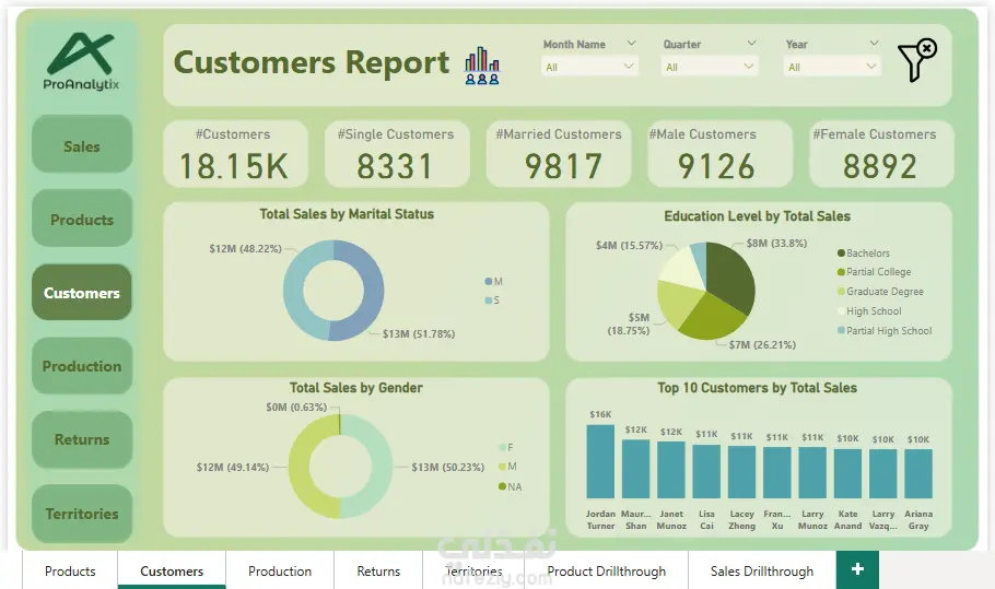 سأبني لك تقريراً تحليلياً احترافياً في Power BI يغطي جميع جوانب أداء عملك في مكان واحد.