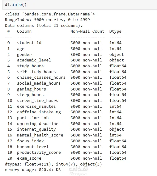 قمت بتنظيف البيانات ومعالجة القيم المفقودة وتحويل البيانات إلى شكل مناسب للتحليل، ثم إجراء تحليل استكشافي (EDA) لاكتشاف العلاقات بين المتغيرات مثل الدراسة، الحضور، والدعم الأسري.
