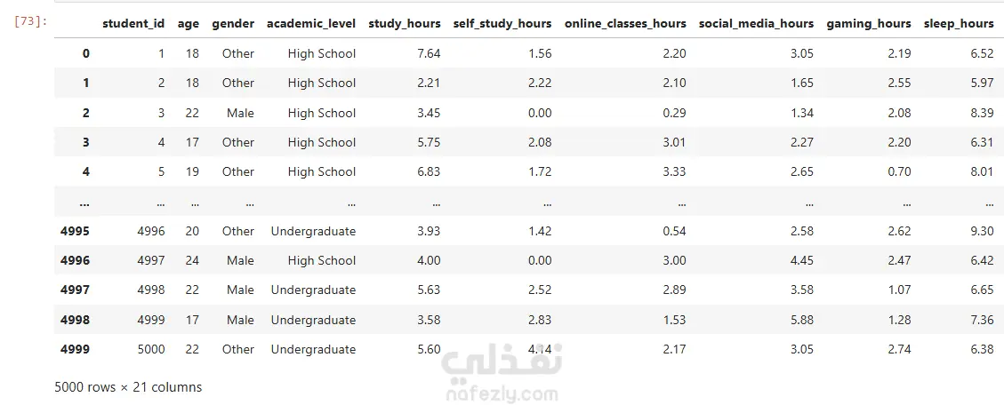 تم بناء نماذج تعلم آلي للتنبؤ بدرجات الطلاب وتقييم أداء النماذج باستخدام مقاييس مناسبة. كما تم استخدام تقنيات Feature Engineering لتحسين جودة البيانات ورفع دقة النتائج.