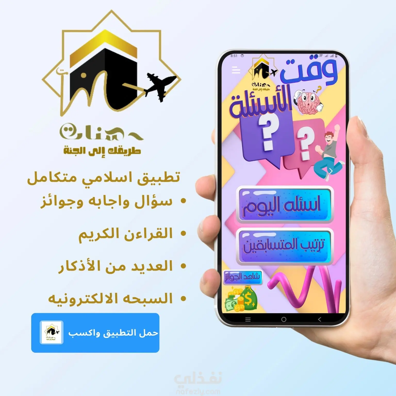 تطبيق حسنات هو تطبيق ديني متكامل يهدف إلى مساعدة المستخدمين على تعزيز علاقتهم بالله وتنظيم حياتهم الدينية اليومية بطريقة سهلة ومبسطة. يجمع التطبيق بين جميع المزايا الأساسية للتطبيقات الدينية الحديثة، مثل قراءة القرآن الكريم، الأذكار اليومية، مواقيت الصلاة، والتذكير بالأذكار والأعمال الصالحة. يتميز التطبيق أيضًا بوجود مسابقة دينية يومية تساعد المستخدمين على زيادة معرفتهم الدينية بطريقة تفاعلية وممتعة، حيث يمكنهم الإجابة على أسئلة متنوعة في الدين الإسلامي وجمع النقاط والمنافسة مع الآخرين. يوفر تطبيق حسنات تجربة روحانية متكاملة تجمع بين التعلم، العبادة، والتحفيز اليومي على فعل الخير، مع واجهة سهلة الاستخدام وتصميم مريح يساعد المستخدم على الالتزام بالأعمال الدينية بشكل يومي. تطبيق حسنات هو رفيقك اليومي لزيادة الحسنات وتقوية الإيمان بأسلوب عصري وتفاعلي.