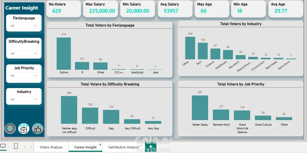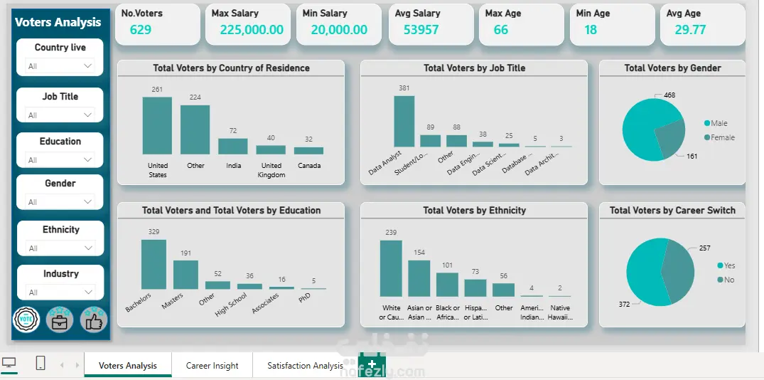 تحليل بيانات الناخبين (Voters Data) من حيث التنظيف والمعالجة (Data Cleaning) لضمان دقة البيانات، مع استخراج مؤشرات مهمة مثل إجمالي عدد الناخبين، التوزيع حسب العمر أو المنطقة، ونسب المشاركة. يشمل العمل إنشاء Dashboard تفاعلي باستخدام Excel أو Power BI لعرض البيانات بشكل واضح وسهل الفهم، مع استخدام الرسوم البيانية وPivot Tables وPower Query لاستخراج Insights تدعم اتخاذ القرار وتحليل سلوك التصويت.