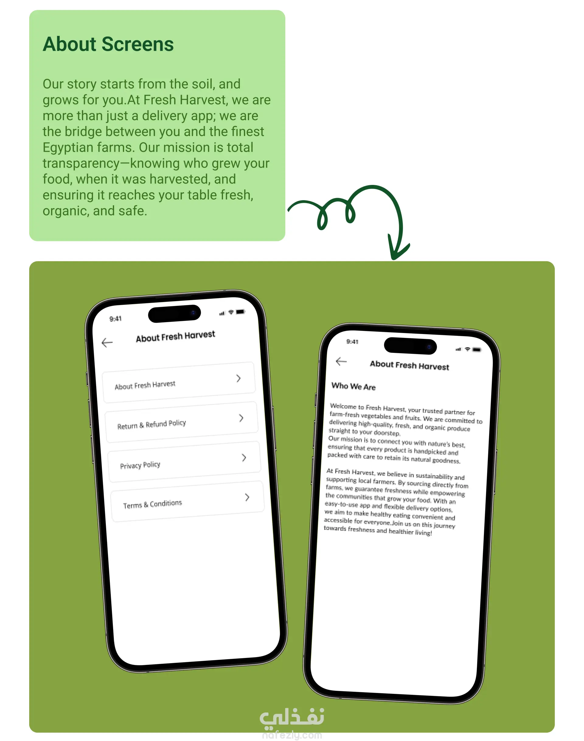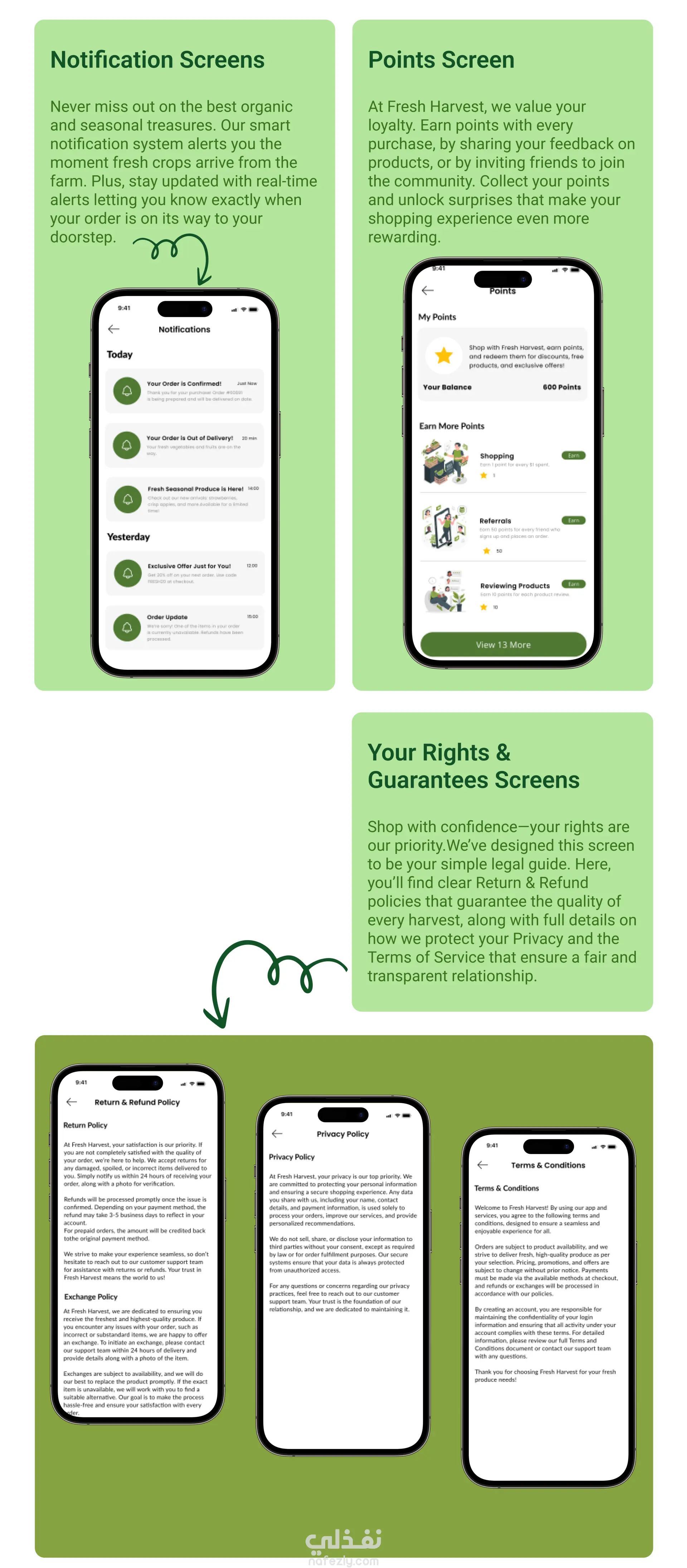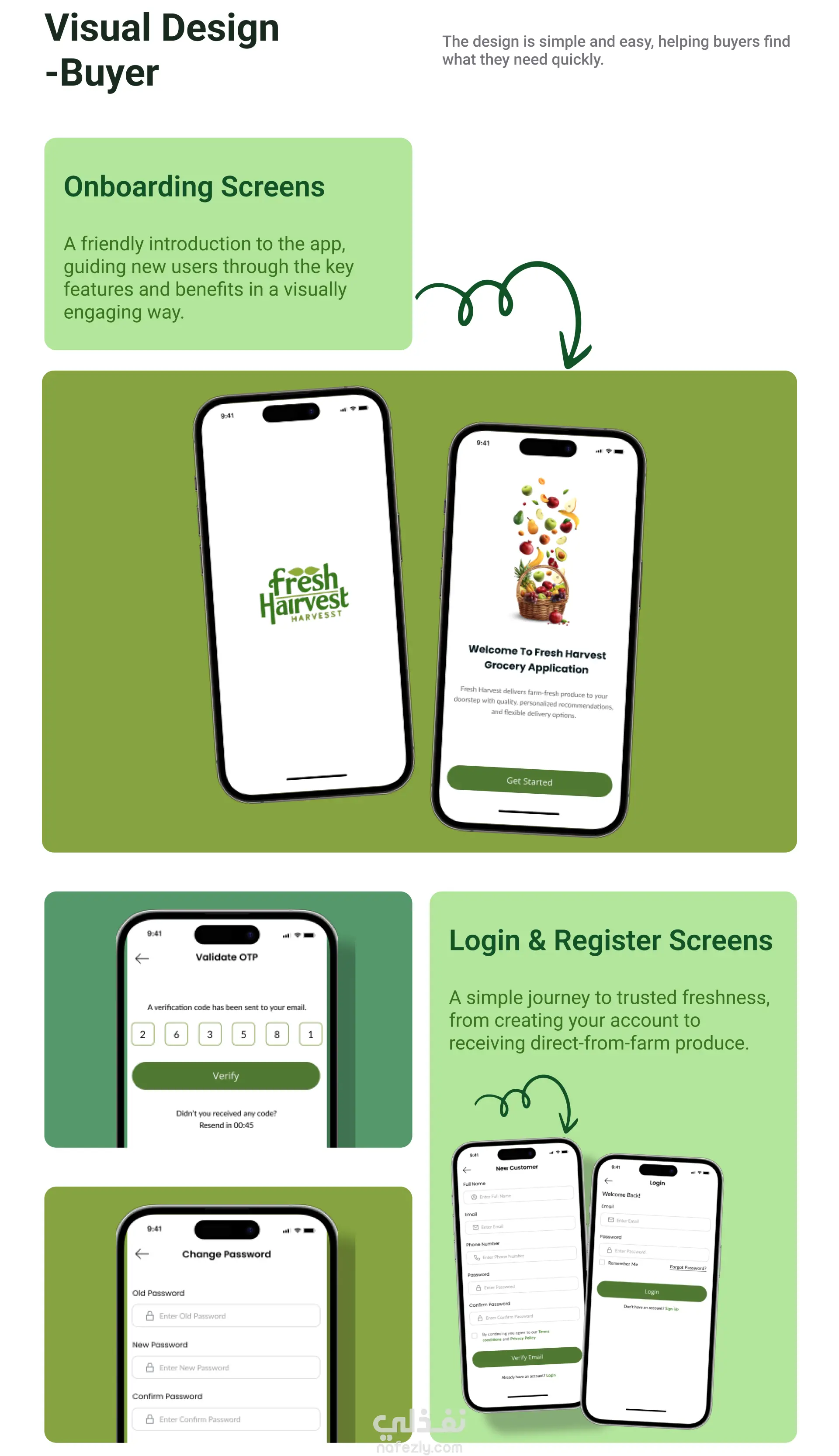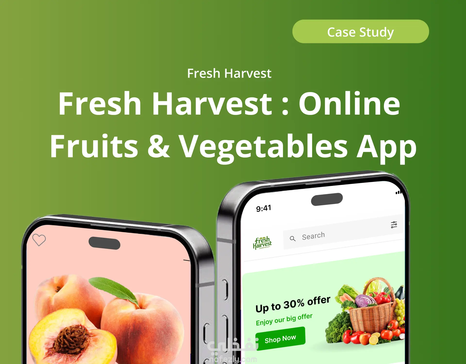 تصميم تطبيق Fresh Harvest (UI/UX Design) لبيع الخضار والفاكهة الطازجة اونلاين