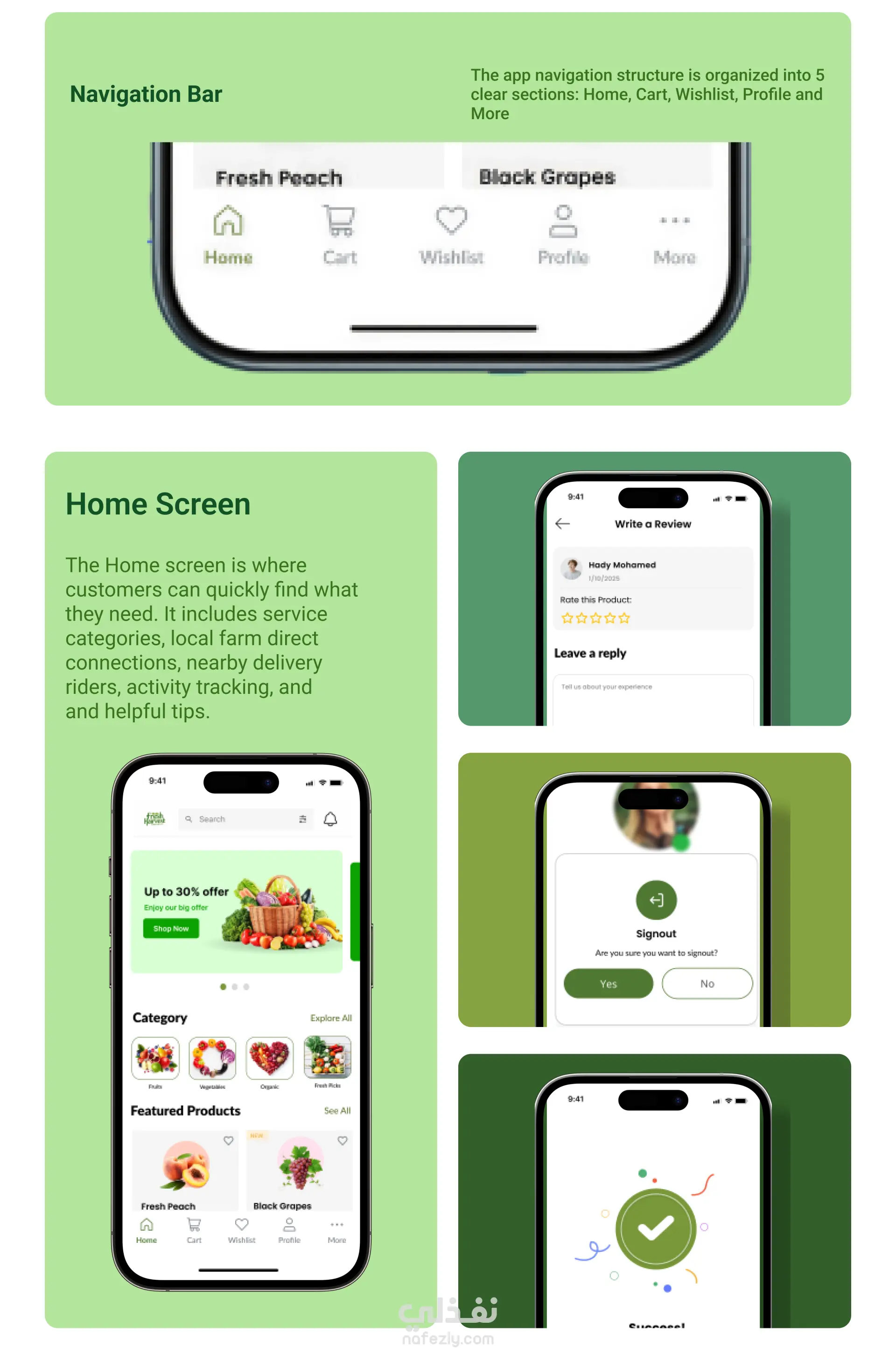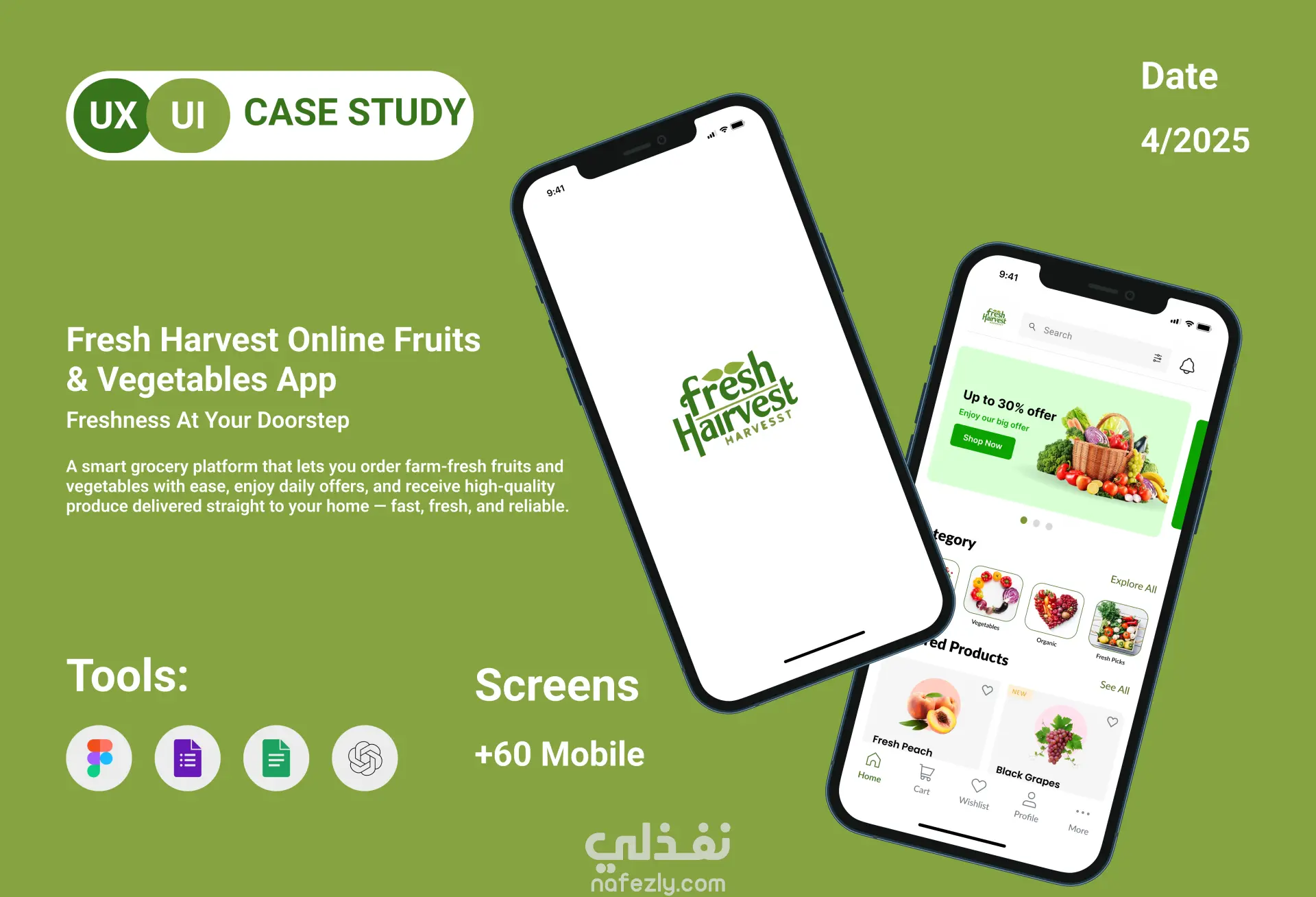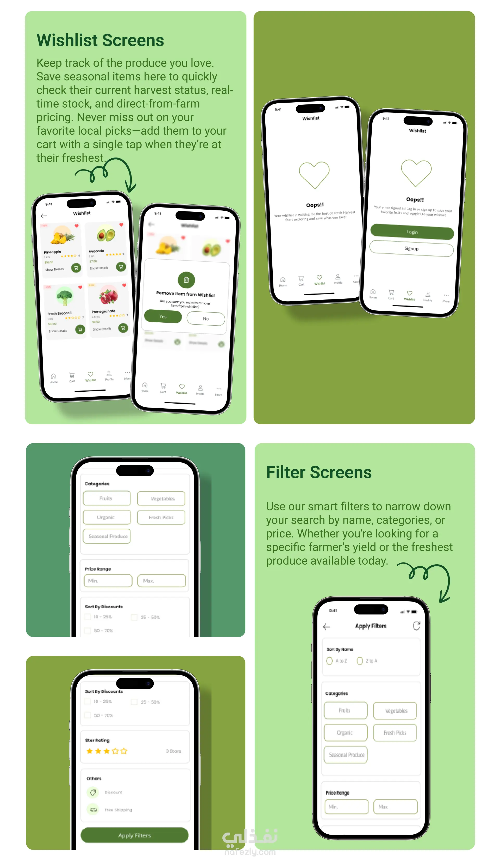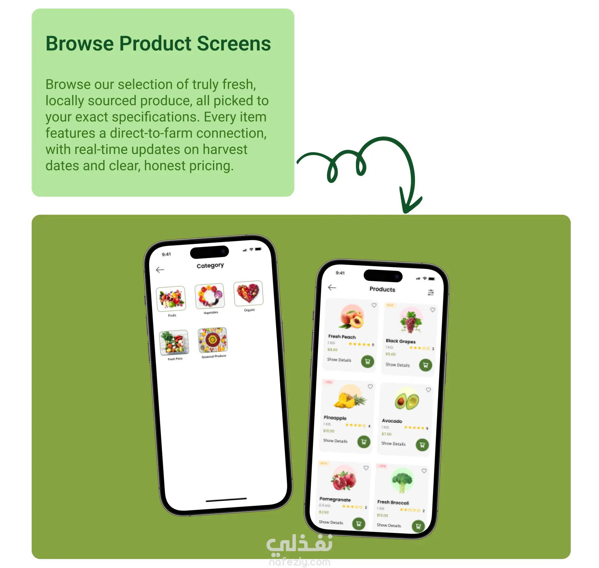 تصميم تطبيق Fresh Harvest (UI/UX Design) لبيع الخضار والفاكهة الطازجة اونلاين