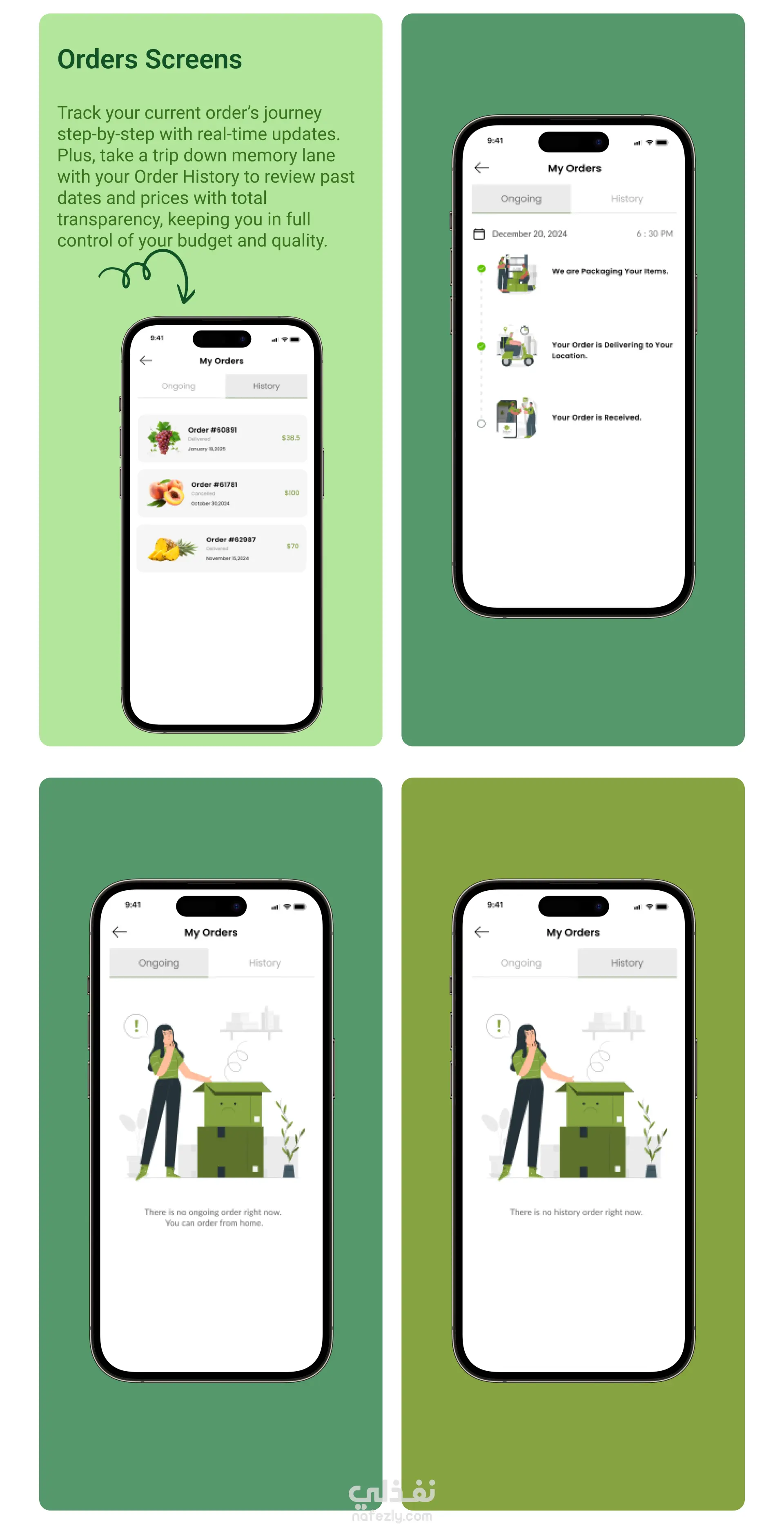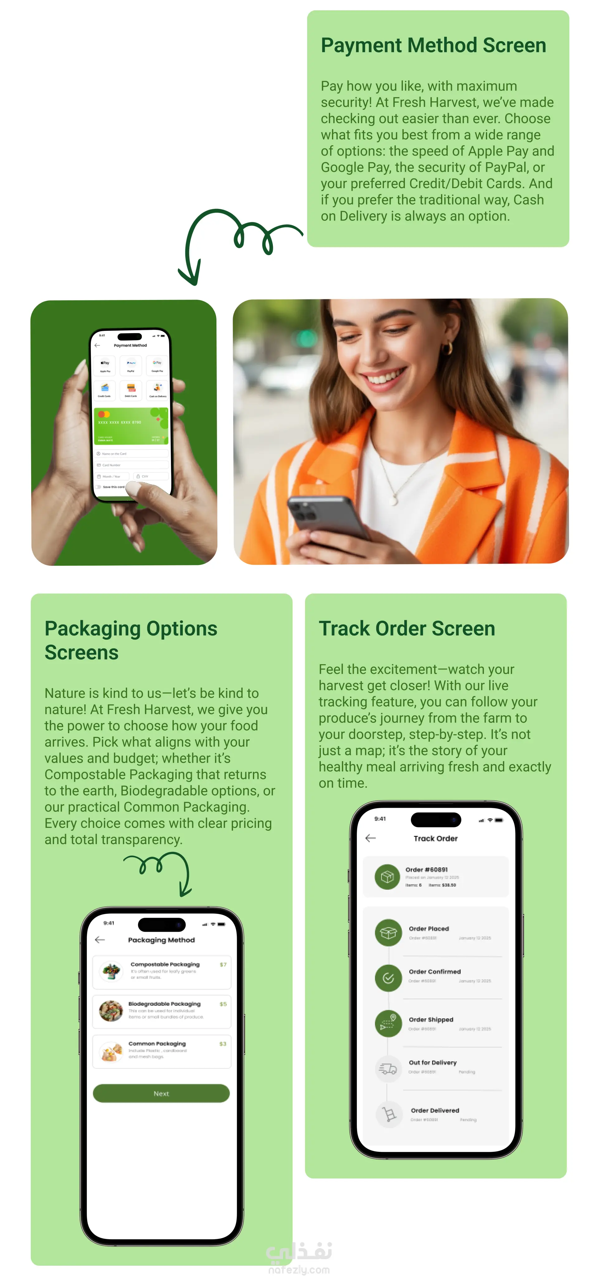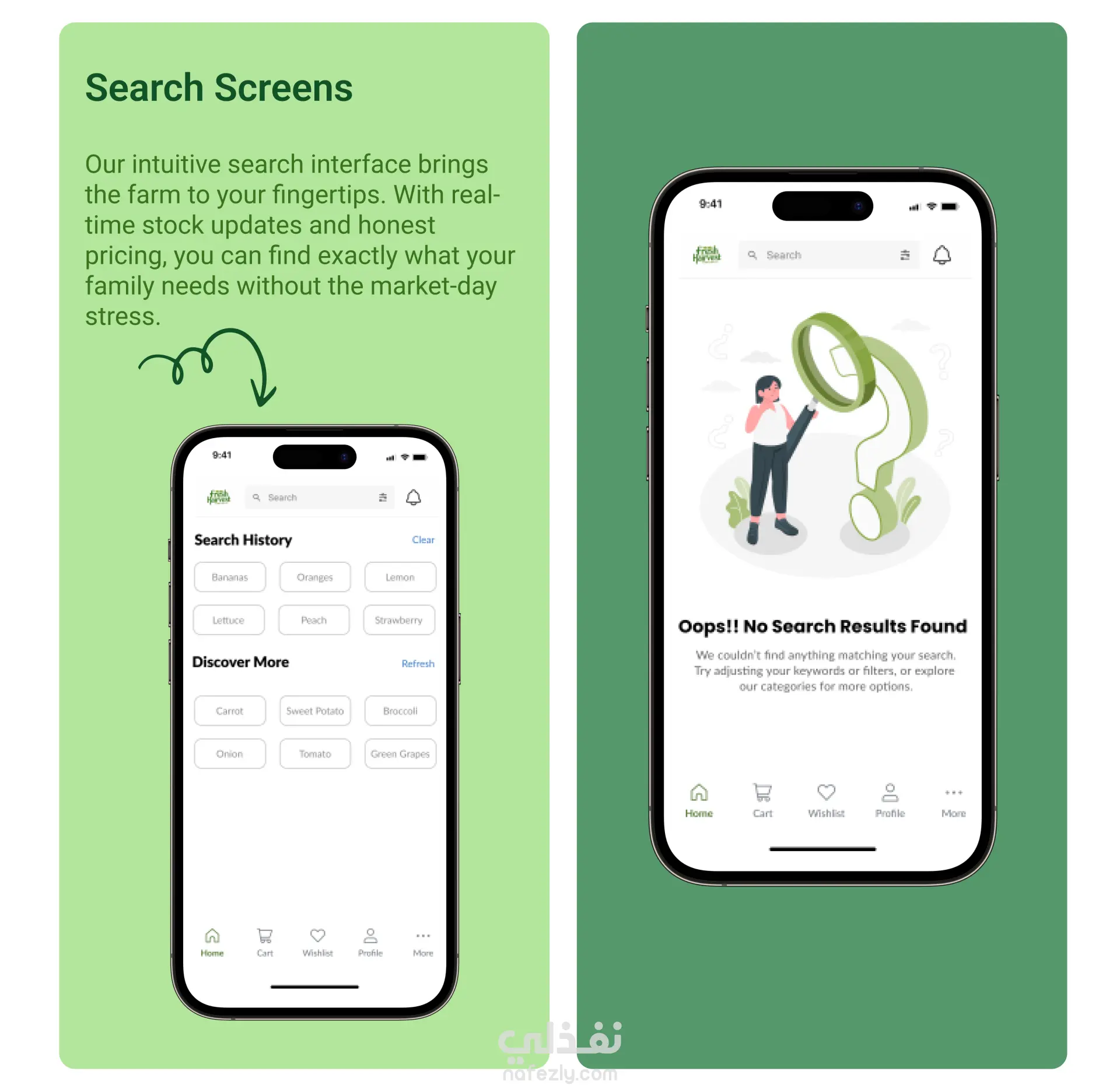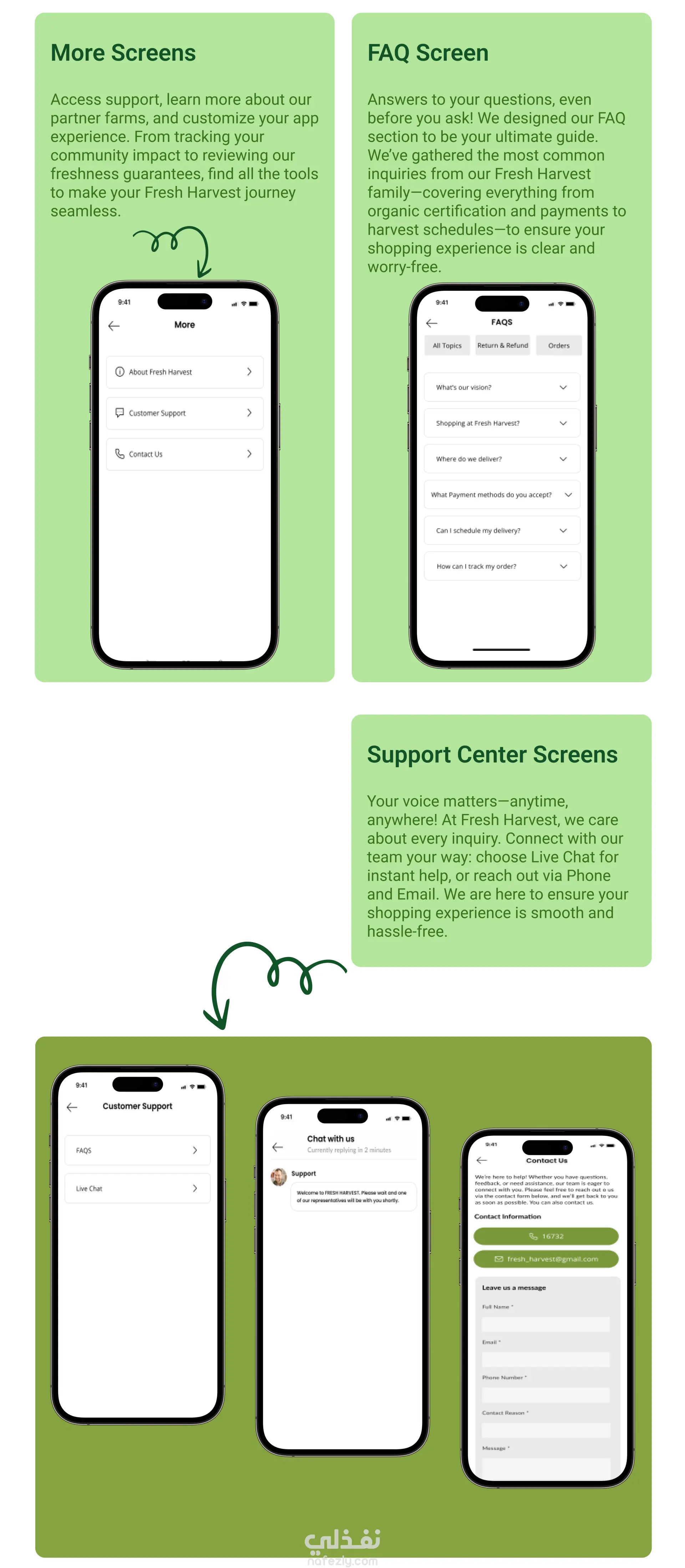 تصميم تطبيق Fresh Harvest (UI/UX Design) لبيع الخضار والفاكهة الطازجة اونلاين