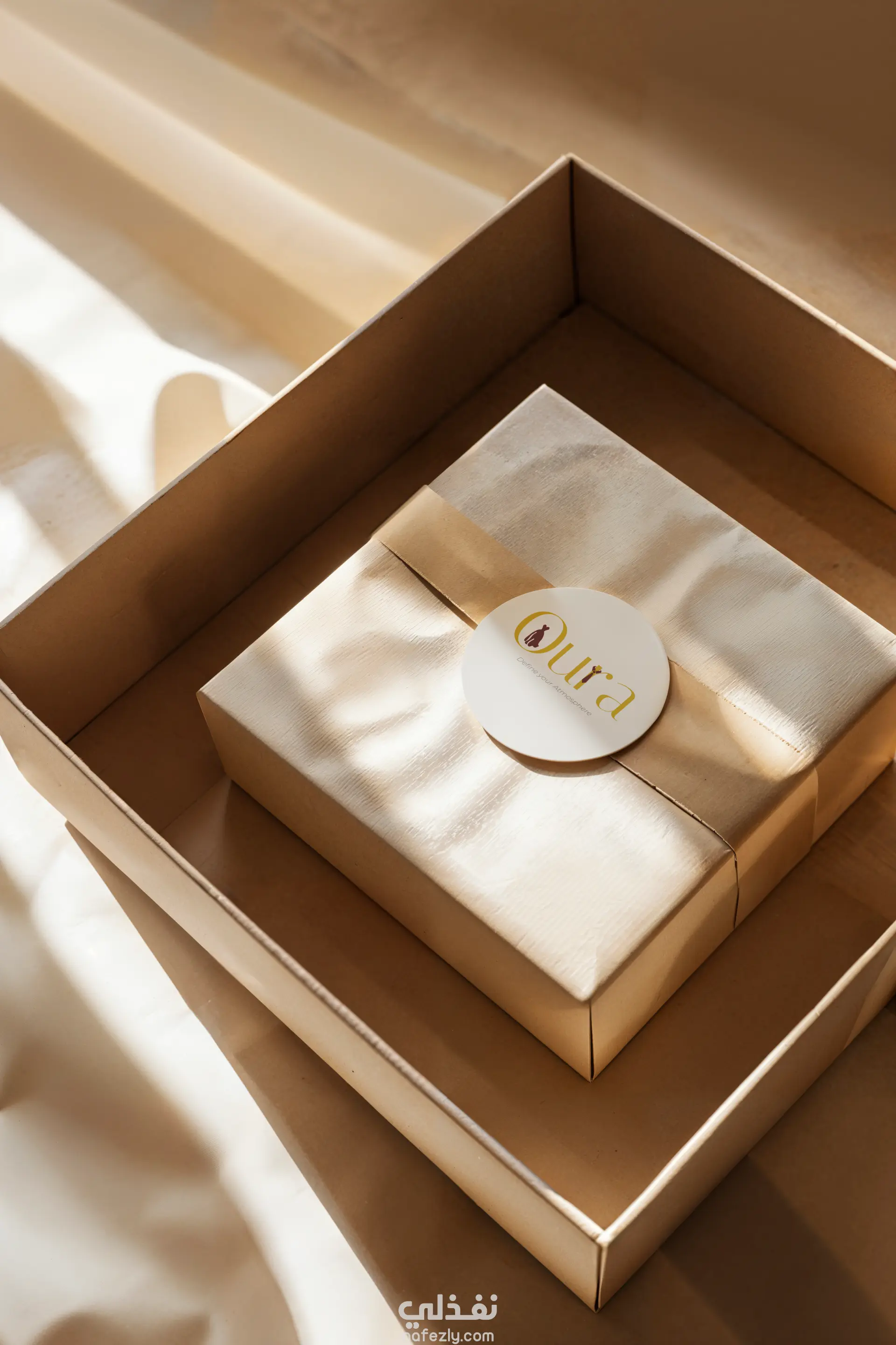 وستيكر خلفيته بيضاء علي صندوق مغلف