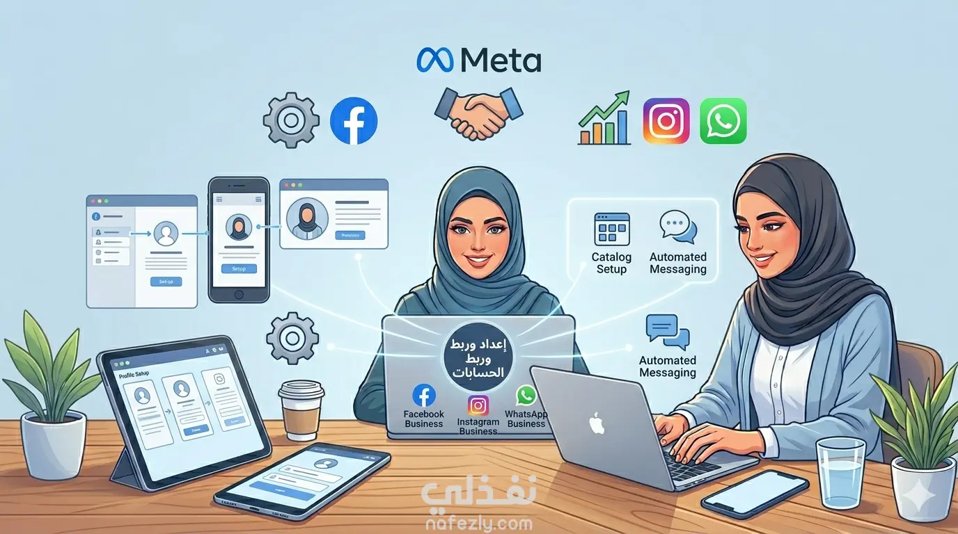 إعداد وربط حسابات فيسبوك وإنستجرام وواتساب بزنس لمشروعك