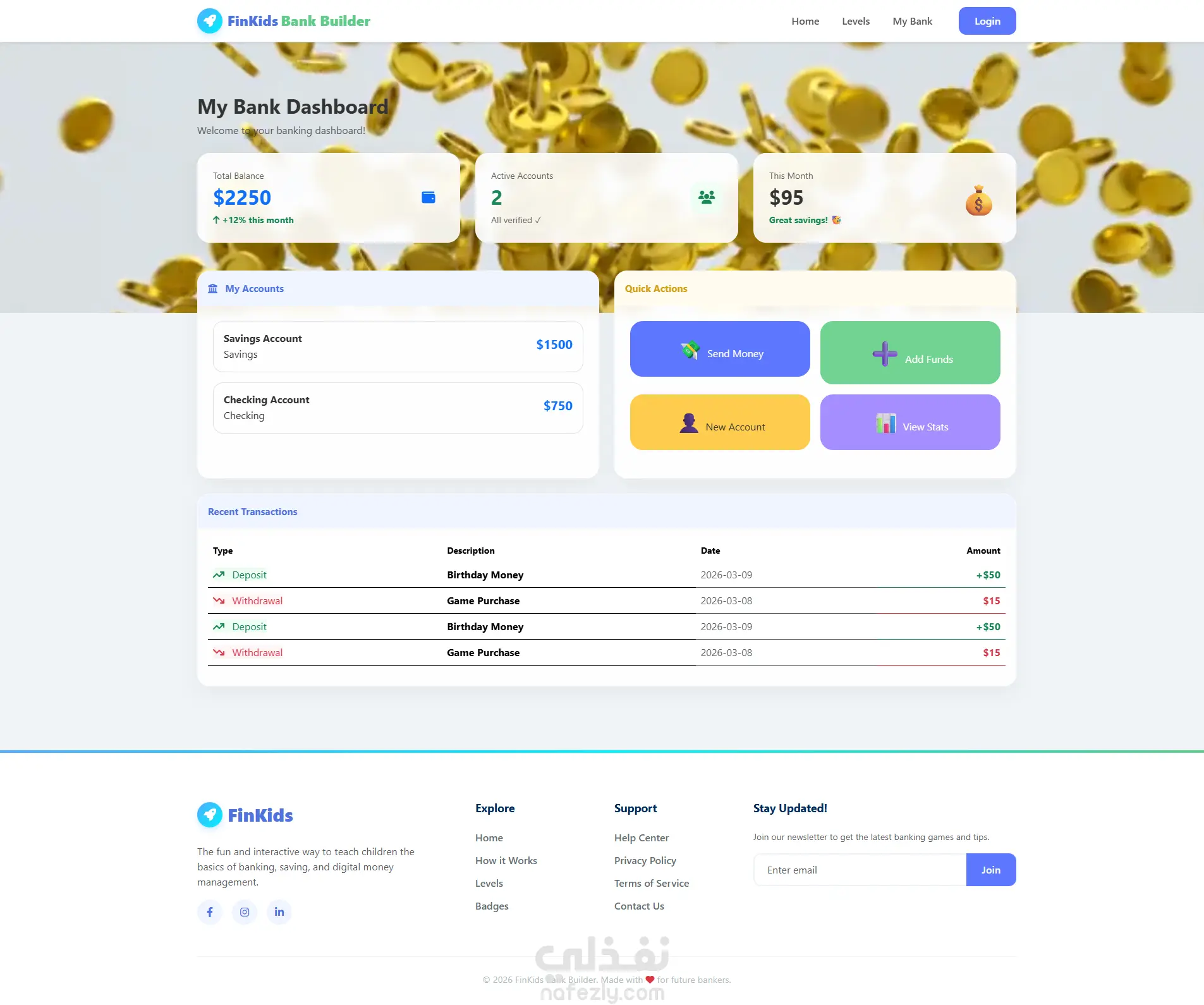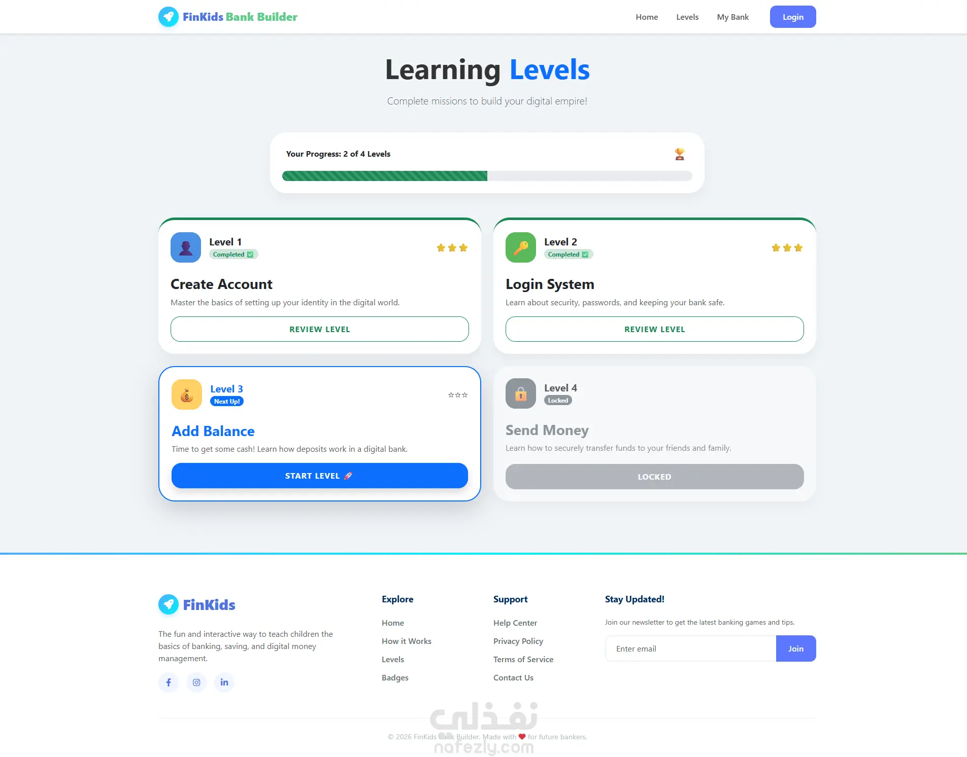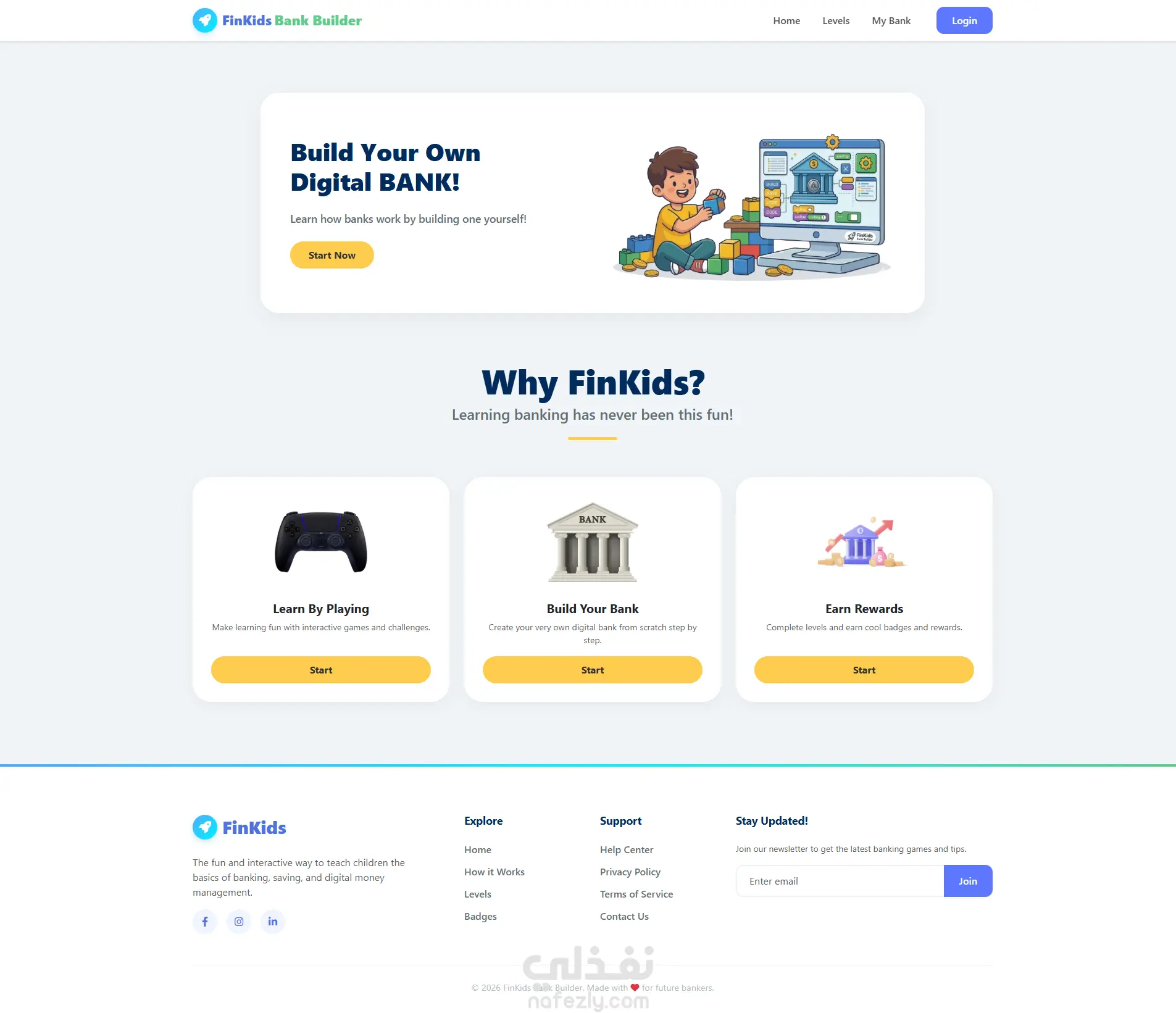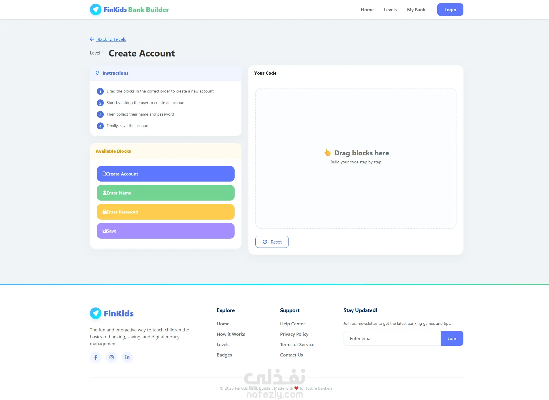 Finkids Bank Builder هو موقع تعليمي تفاعلي يهدف إلى تعليم الأطفال أساسيات البرمجة بطريقة ممتعة تعتمد على أسلوب اللعب (Gamification).