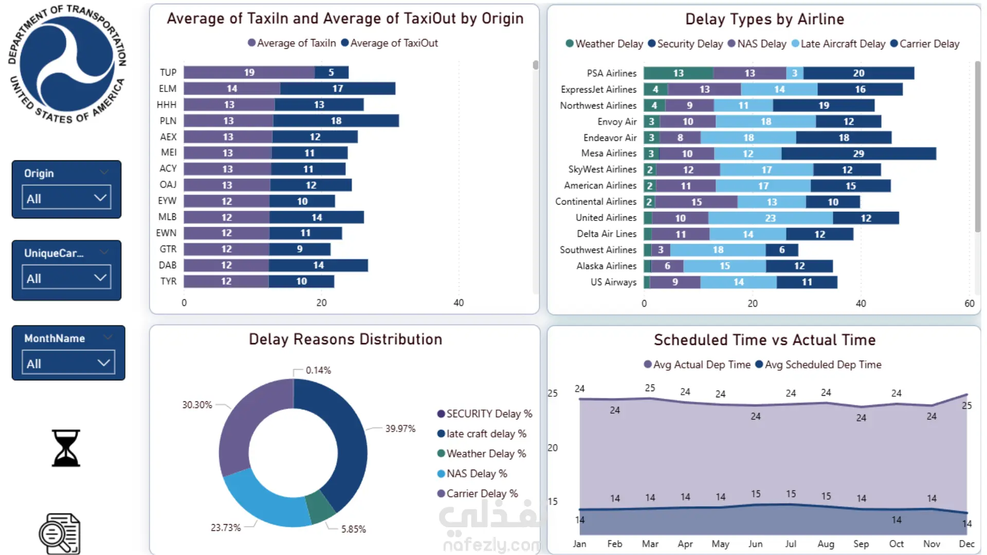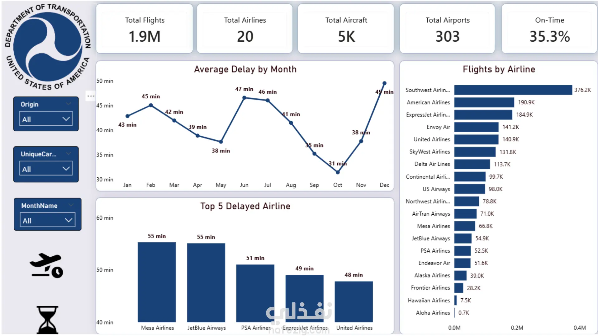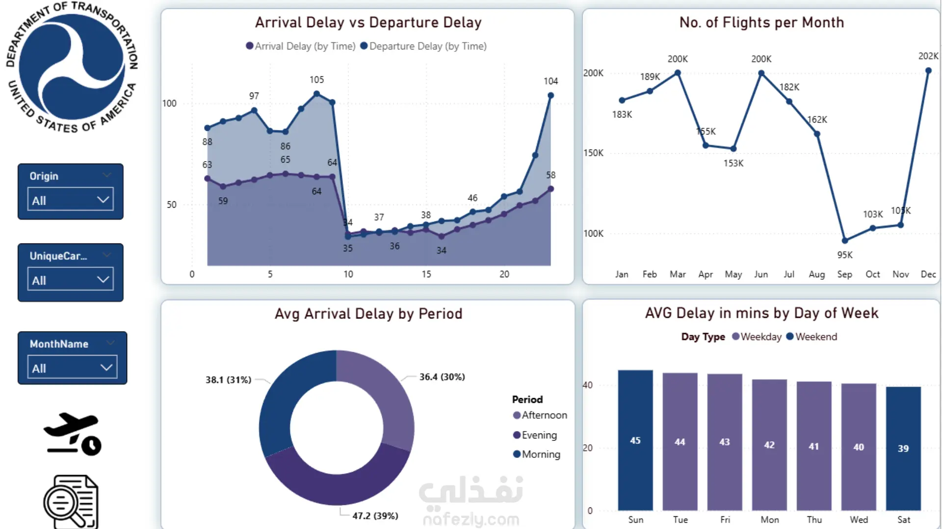 أقدم خدمة تحليل بيانات متكاملة لتحويل البيانات الخام إلى معلومات واضحة تساعد في اتخاذ القرار. ما الذي أقدمه: تنظيف البيانات باستخدام Python (معالجة القيم المفقودة وتنظيم البيانات) تحويل البيانات وتجهيزها للتحليل تصميم Data Model باستخدام Star Schema إنشاء Dashboard تفاعلي باستخدام Power BI مميزات الخدمة: * عرض البيانات بشكل بصري واضح وسهل الفهم * مؤشرات أداء (KPIs) مثل متوسط التأخير وعدد الرحلات * تحليل أسباب التأخير (الطقس، شركة الطيران، وغيرها) * إمكانية إضافة فلاتر للتفاعل مع البيانات ستحصل على: * Dashboard احترافي وجاهز للاستخدام * بيانات منظمة ونظيفة * إمكانية التعديل حسب طلبك يسعدني العمل معك وتحويل بياناتك إلى رؤى واضحة وقيمة