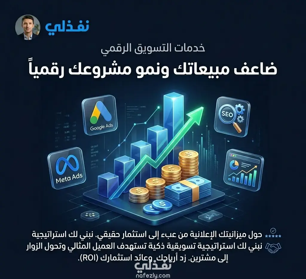هل تنفق الكثير من الأموال على الإعلانات دون تحقيق عائد ملموس (ROI)؟ التخبط والعشوائية في التسويق يهدر مالك ووقتك. بصفتي مسوق رقمي، أقدم لك الحل من خلال إطلاق حملات إعلانية موجهة "بالبيانات والأرقام". سأقوم بإدارة ميزانيتك الإعلانية بذكاء لاستهداف العميل الذي يبحث عنك فعلياً، مع تحسين مستمر للأداء لضمان حصولك على أعلى نتائج بأقل تكلفة ممكنة، وتحقيق أهدافك التجارية.