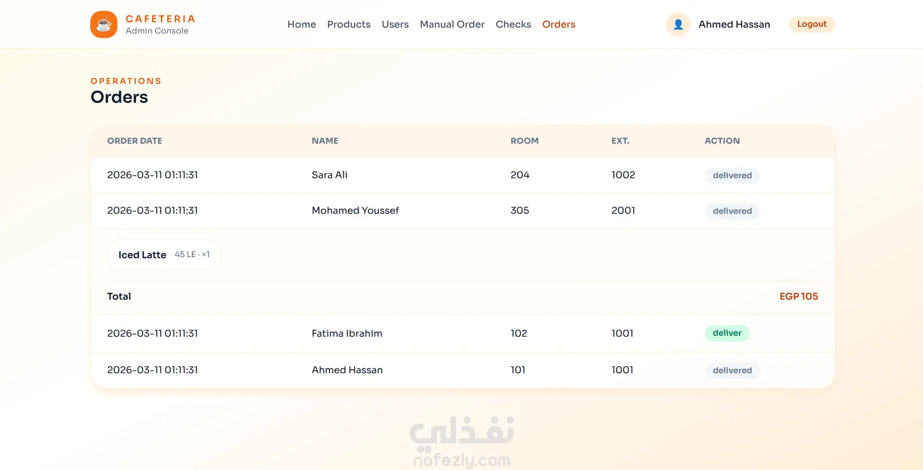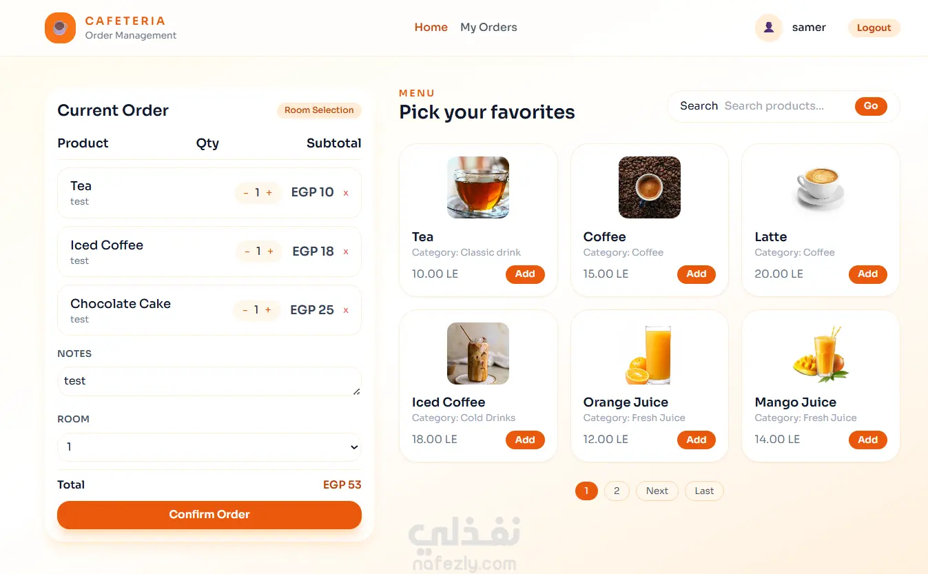 قمت بتطوير نظام ويب متكامل لإدارة الكافيتريا مخصص للاستخدام الداخلي داخل الشركات، يهدف إلى تسهيل عملية طلب المنتجات وتنظيم إدارة الطلبات بشكل احترافي. النظام يدعم نوعين من المستخدمين (Admin / User) مع نظام صلاحيات كامل، ويوفر تجربة سلسة للمستخدمين في تصفح المنتجات، إضافة الطلبات، ومتابعة حالة الطلب. أهم المميزات: نظام تسجيل دخول آمن مع صلاحيات مختلفة (مدير / مستخدم) عرض المنتجات مع التصنيفات وإمكانية إضافة صور لكل منتج نظام Cart لإدارة الطلبات مع حساب الكميات والأسعار تلقائيًا متابعة حالة الطلب (قيد التنفيذ - جاري التوصيل - تم التسليم) إمكانية عرض سجل الطلبات لكل مستخدم إمكانية إلغاء الطلبات لوحة تحكم Admin لإدارة المستخدمين والمنتجات والطلبات نظام تقارير لمتابعة الطلبات والإجماليات نظام استعادة كلمة المرور باستخدام Token التقنيات المستخدمة: PHP (بناء MVC Architecture مخصص) MySQL HTML, CSS, JavaScript مميزات تقنية إضافية: تصميم معماري منظم (Routing - Middleware - Validation - Models) واجهات مستخدم منظمة باستخدام Layouts و Partials دعم إعدادات البيئة (Environment Configuration) توفير بيانات تجريبية + نسخة SQL لسهولة التشغيل النتيجة: تم بناء نظام جاهز للاستخدام الفعلي يساعد على تحسين إدارة الطلبات داخل الكافيتريا وتقليل العمليات اليدوية مع توفير تحكم كامل للإدارة.