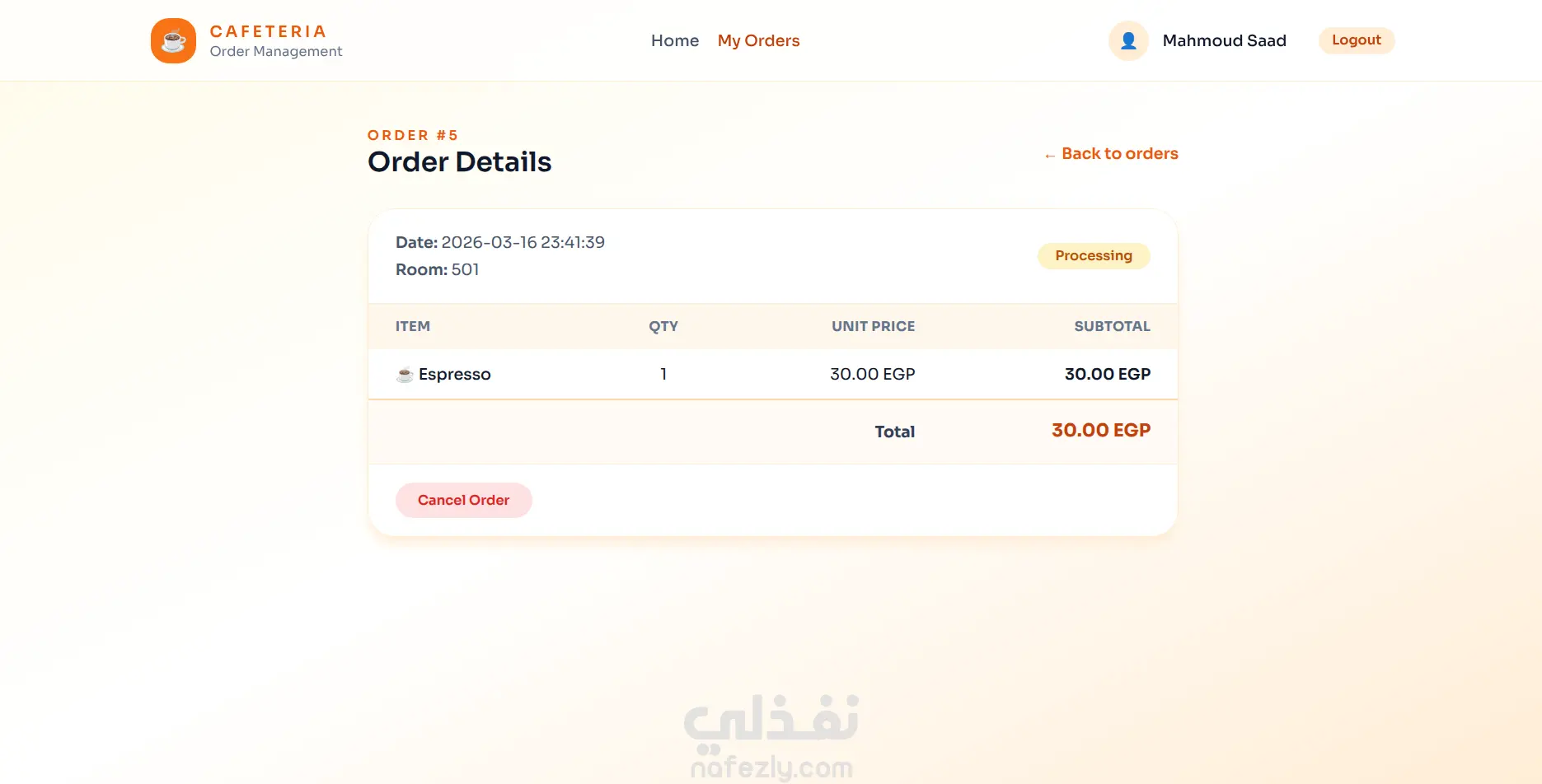 Cafeteria Management System (PHP MVC, MySQL) – نظام إدارة كافيتريا متكامل