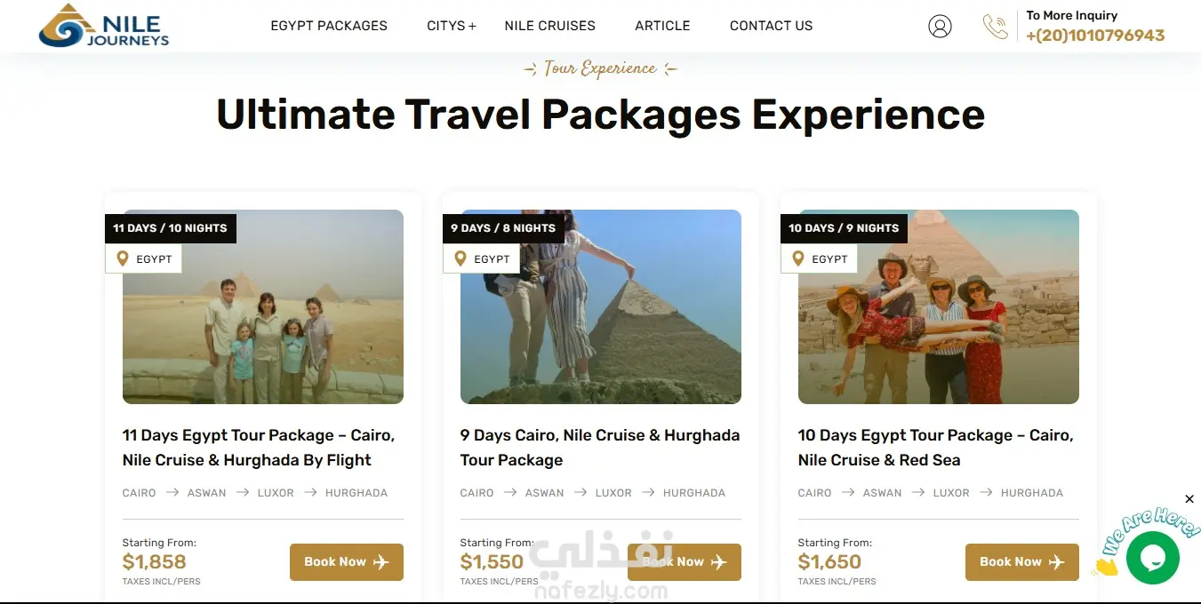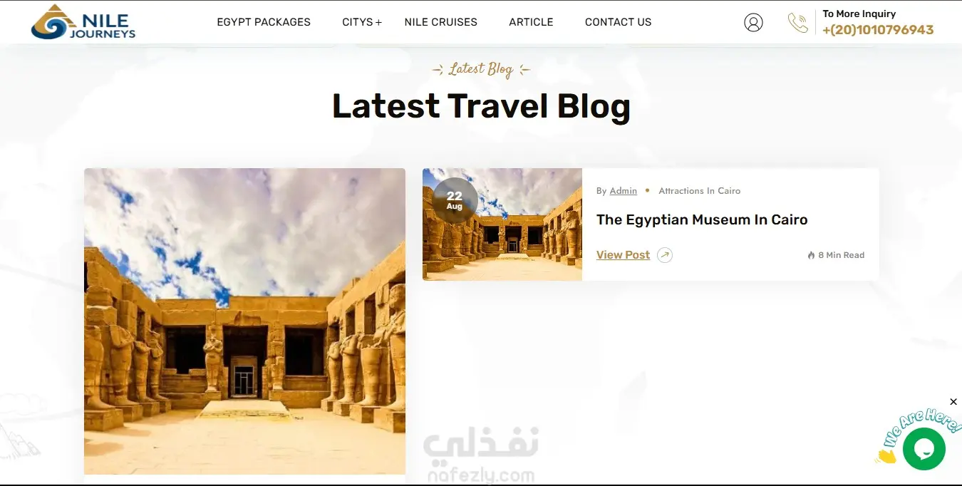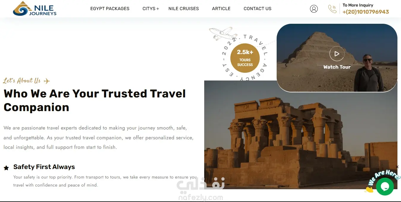 موقع رحلات سياحية لشركة نايل للسياحة بوردبريس اليمنتور الموقع به حجز الرحلات و رحلات متنوعه خاصه بالشركة تقوم الشركه باضافة الرحلات و يمكن للعملاء حجز الرحله من خلال الموقع تم انشائه بتصميم بسيط و متجاوب علي جميع الاجهزه و تحسين ال seo