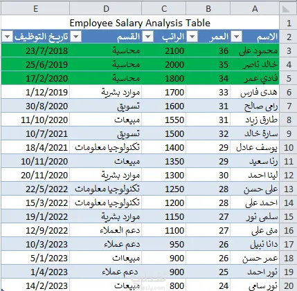 ترتيب البيانات (أسماء، أرقام، تواريخ…)