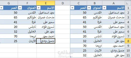 ترتيب الأعمدة والعناوين