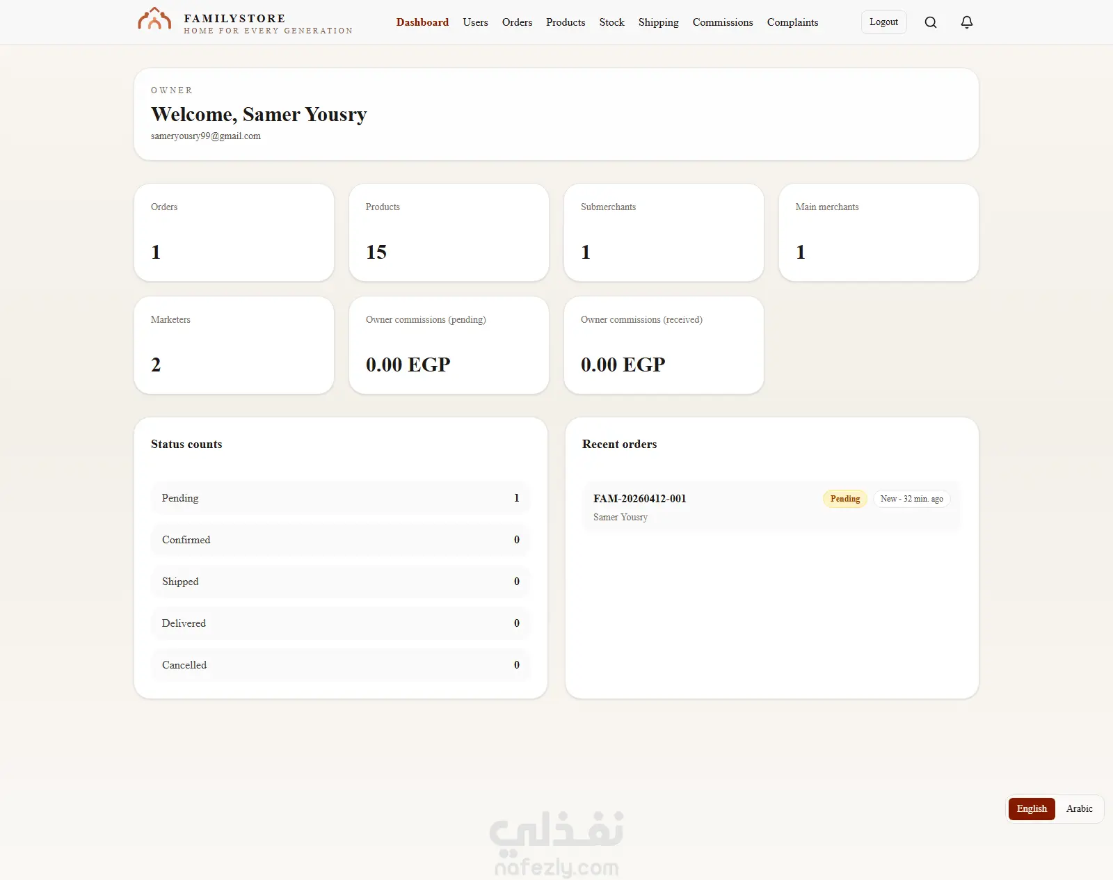 تطبيق ويب Full-Stack لإدارة متجر إلكتروني متعدد المستخدمين مع نظام عمولات وتسويق بالعمولة.