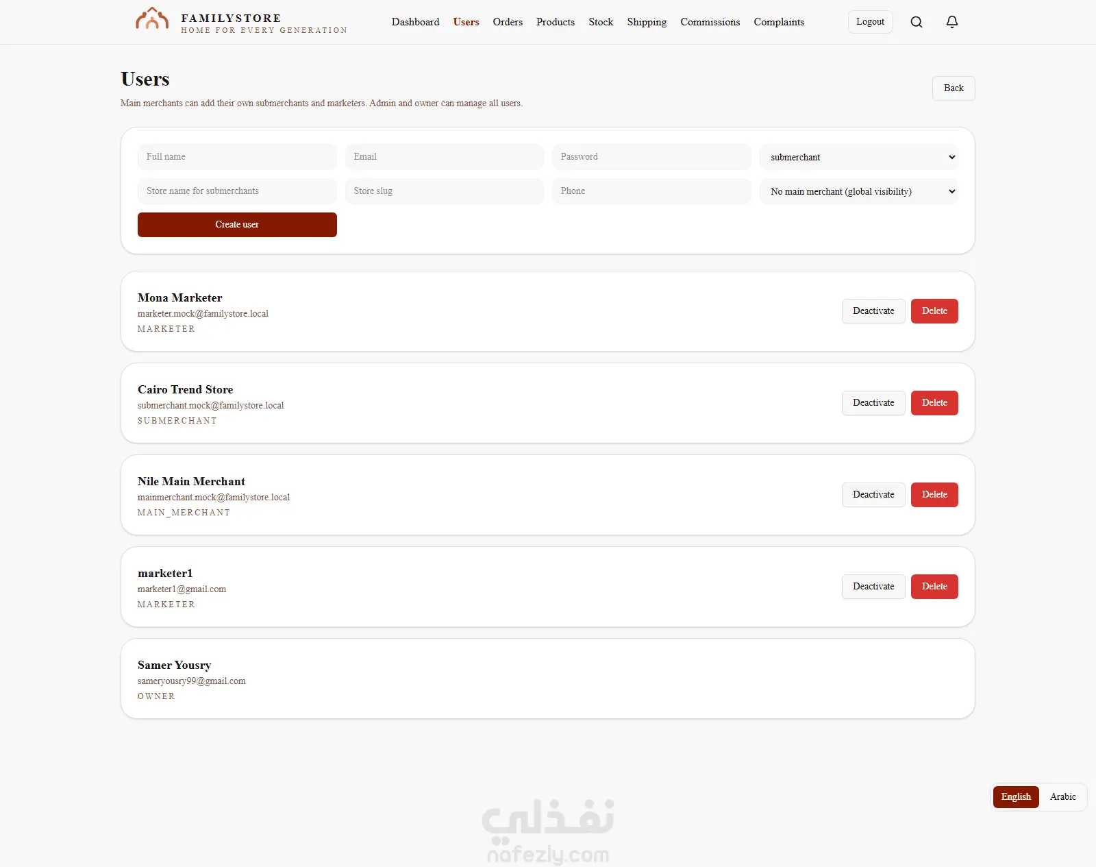 (Owner - Admin - Main Merchant - Submerchant - Marketer)