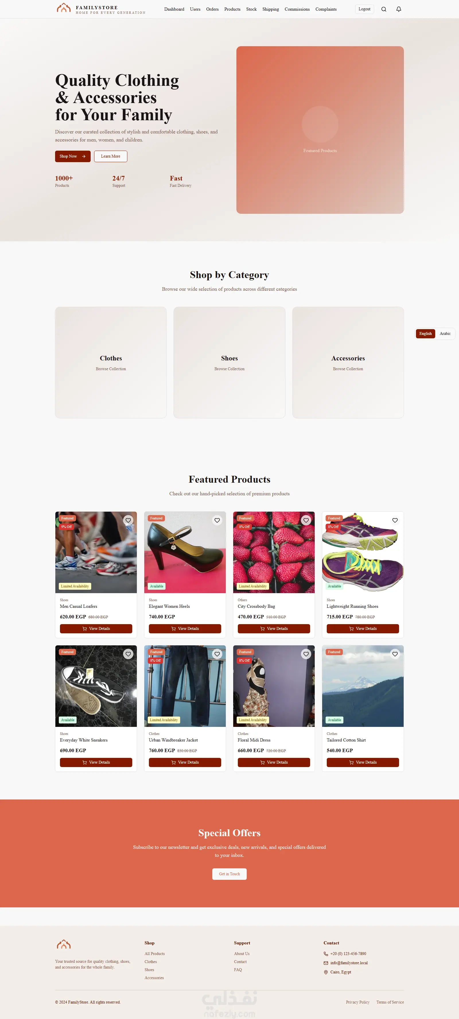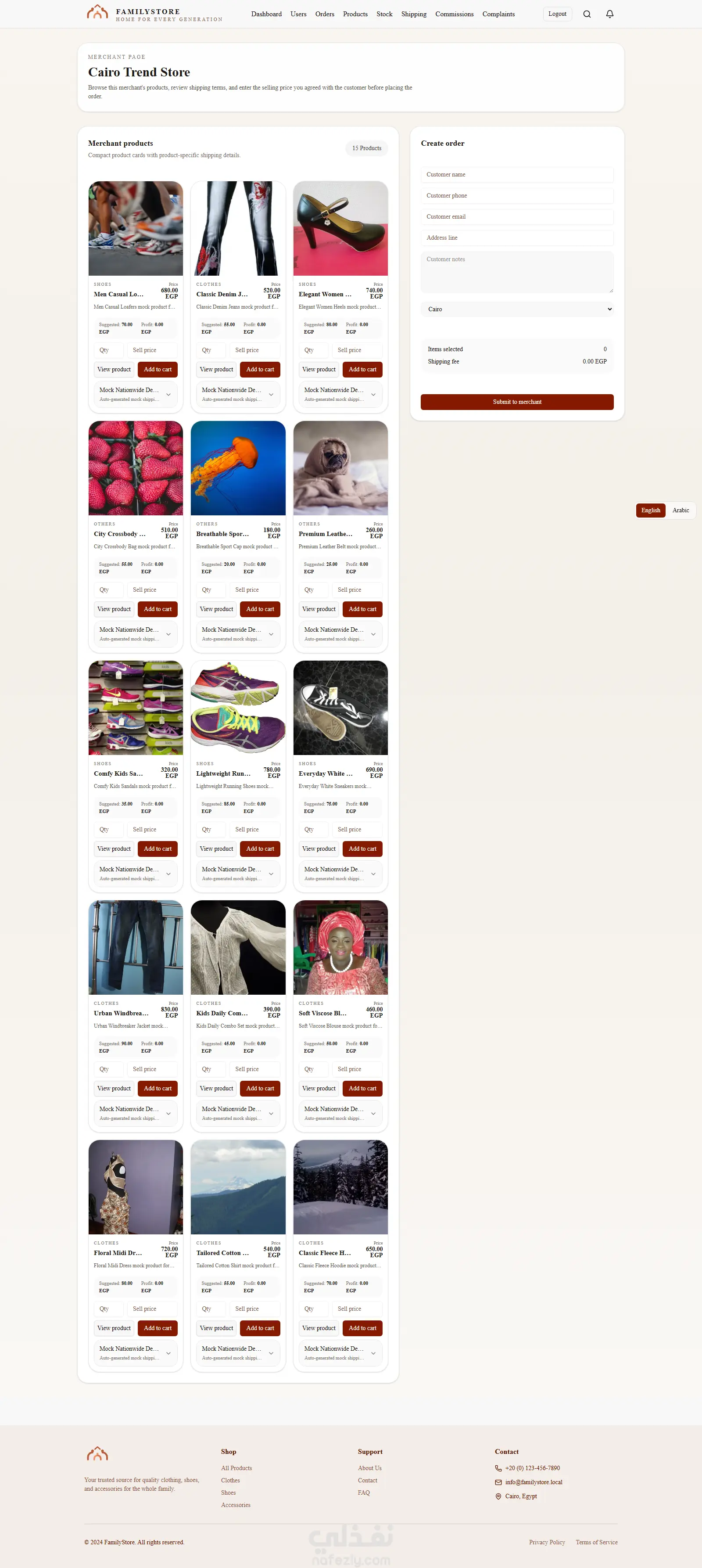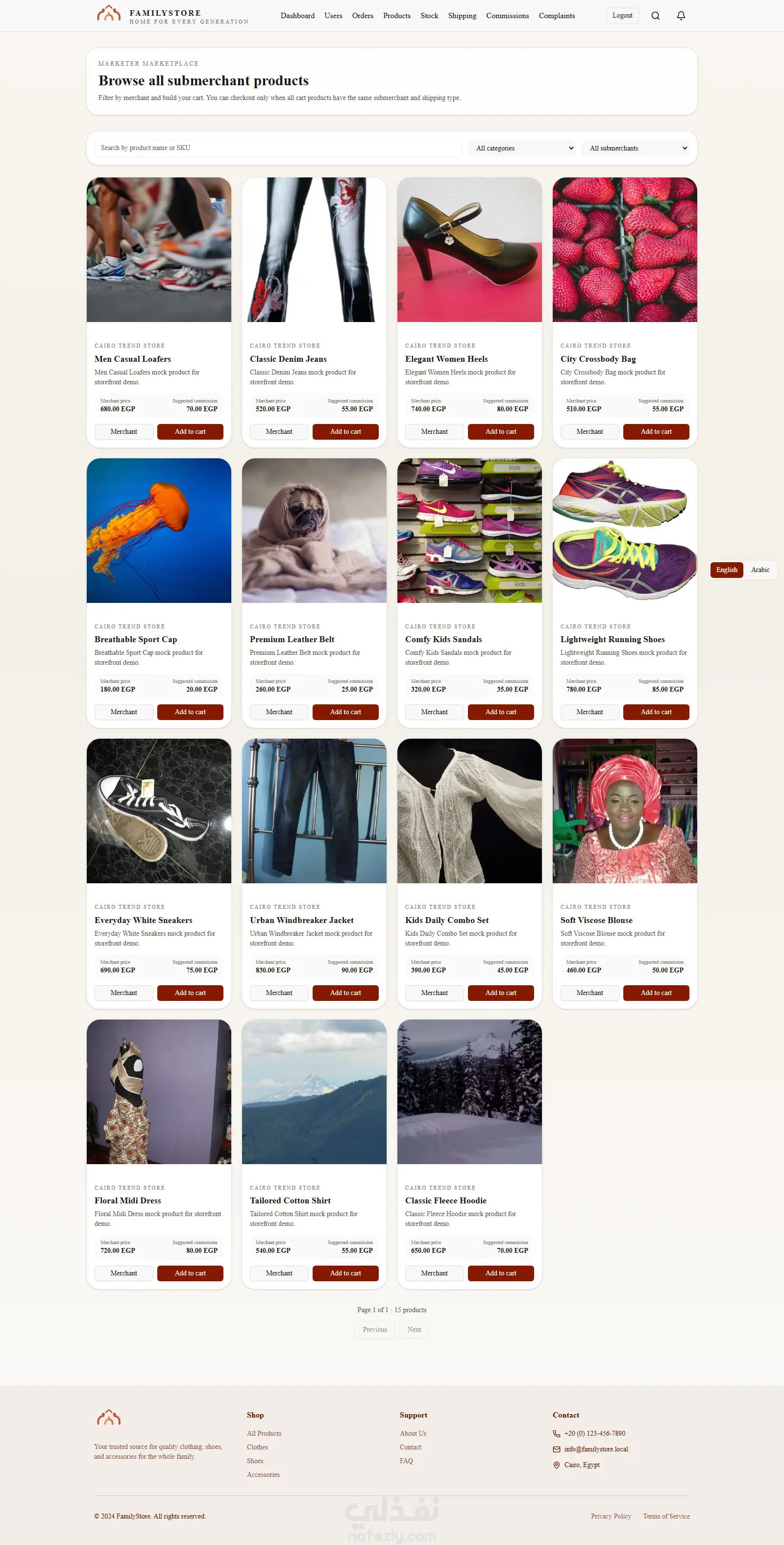 منصة تجارة إلكترونية متكاملة موجهة لبيع الملابس والأحذية، مع دعم نظام Affiliate Marketing لربط التجار بالمسوقين في نظام واحد متكامل.