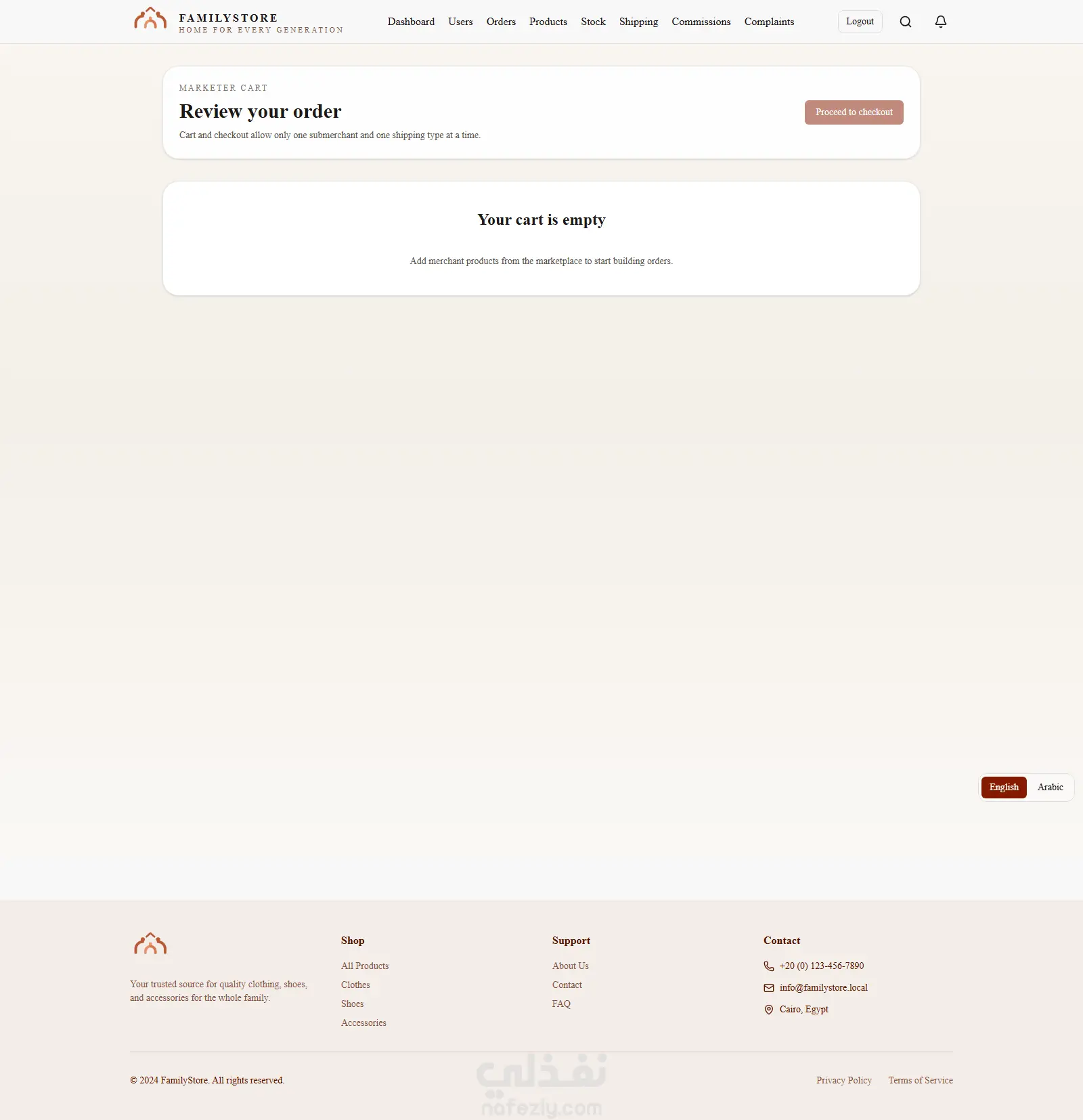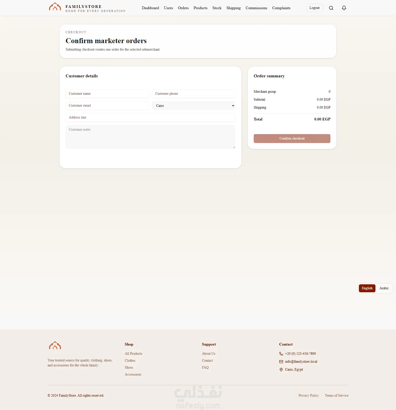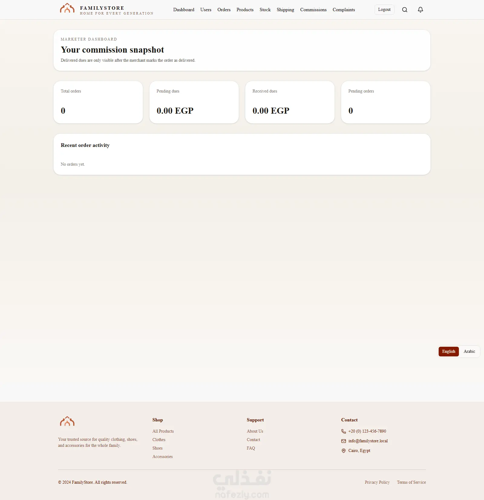 منصة تجارة إلكترونية متكاملة موجهة لبيع الملابس والأحذية، مع دعم نظام Affiliate Marketing لربط التجار بالمسوقين في نظام واحد متكامل.