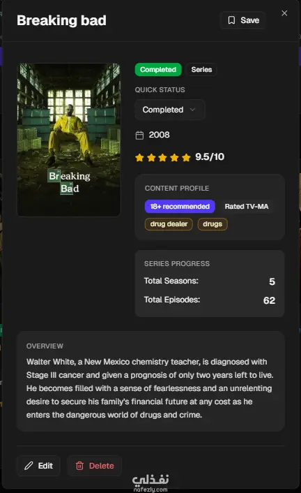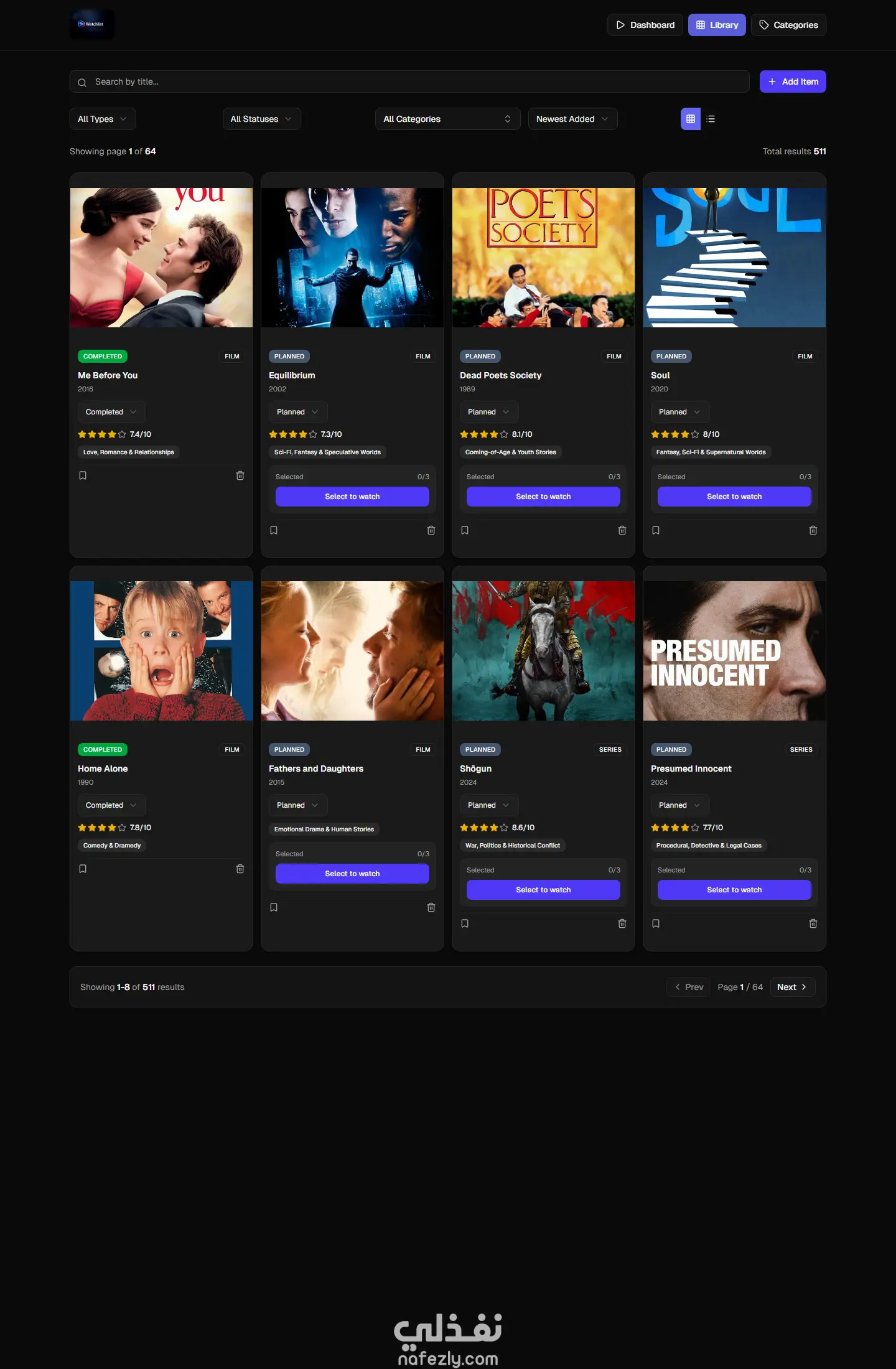 تطبيق إدارة ومتابعة الأفلام والمسلسلات (Watchlist) – Next.js و Node.js