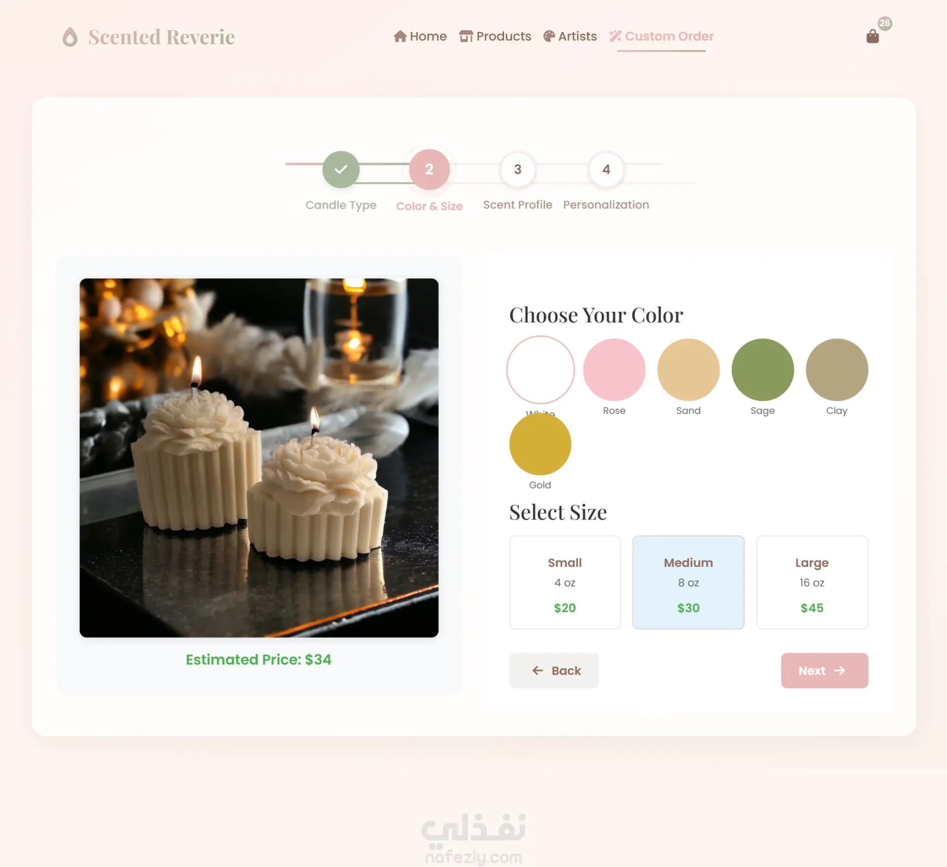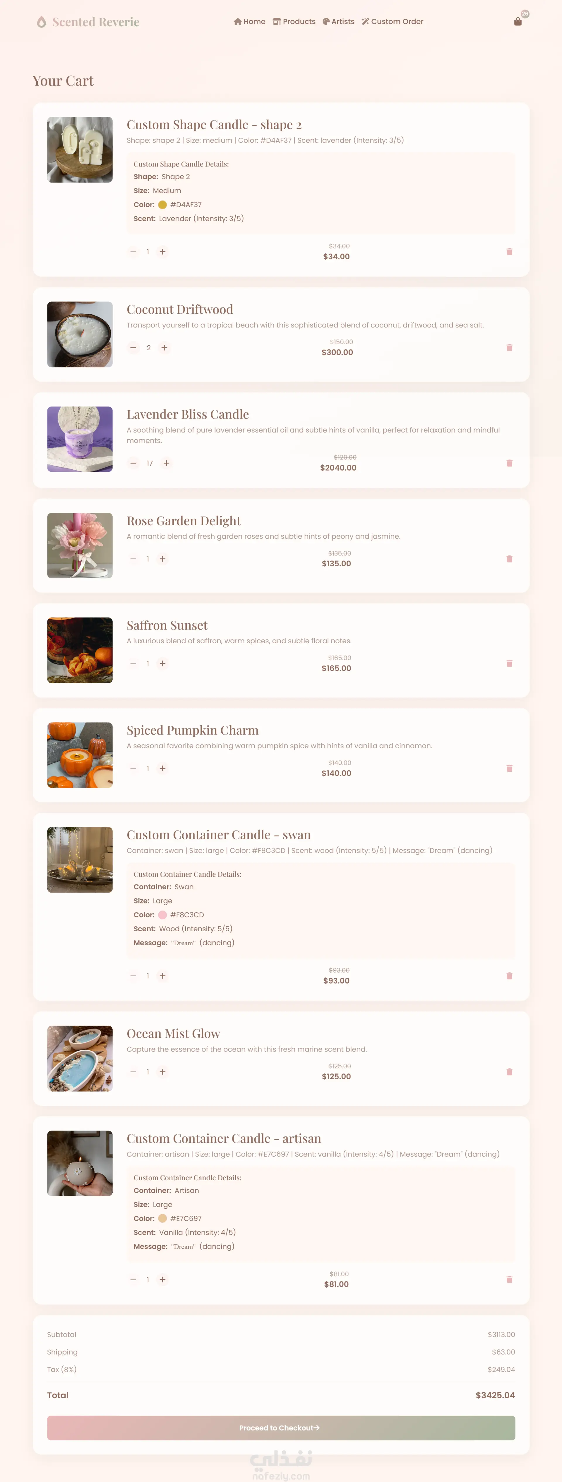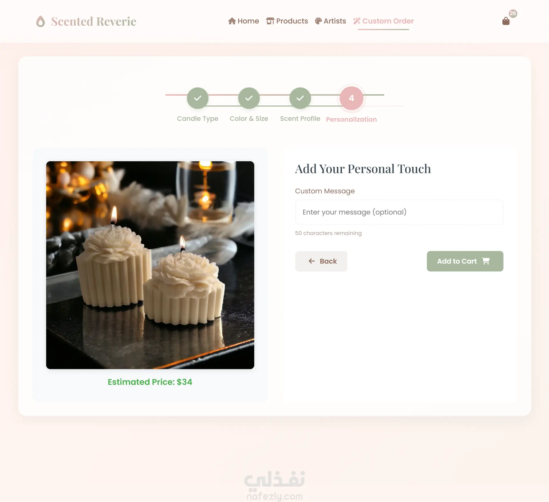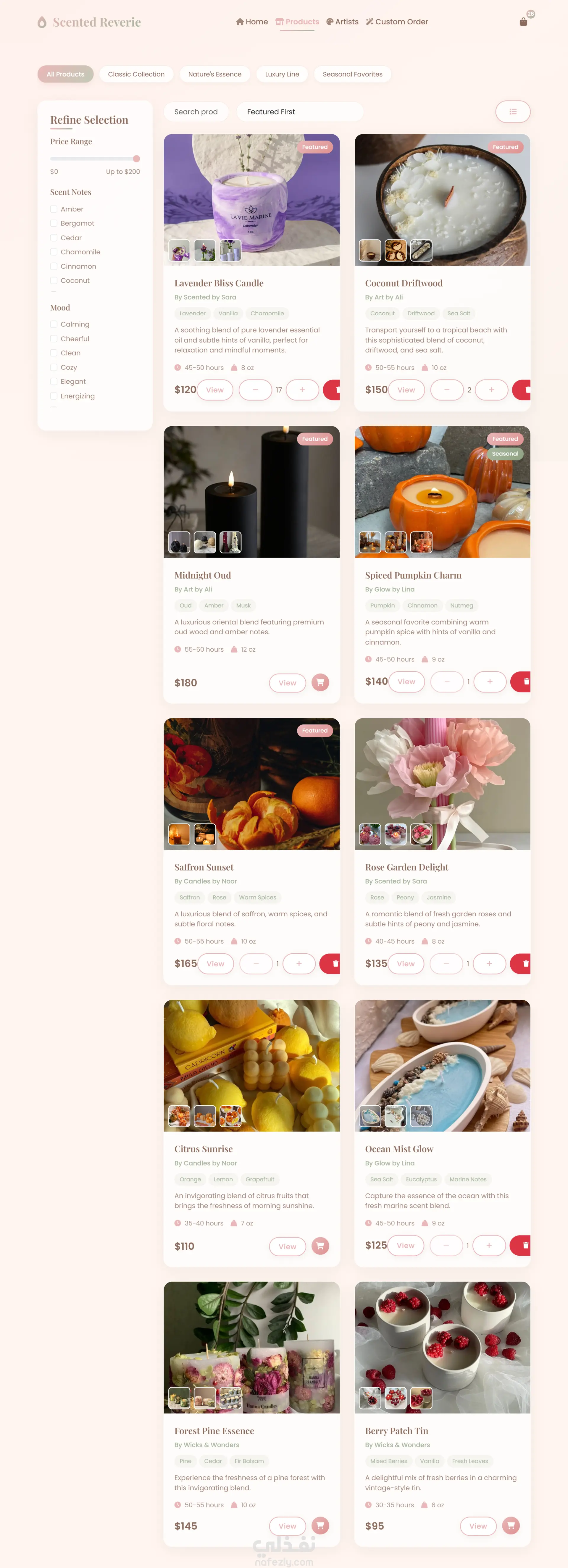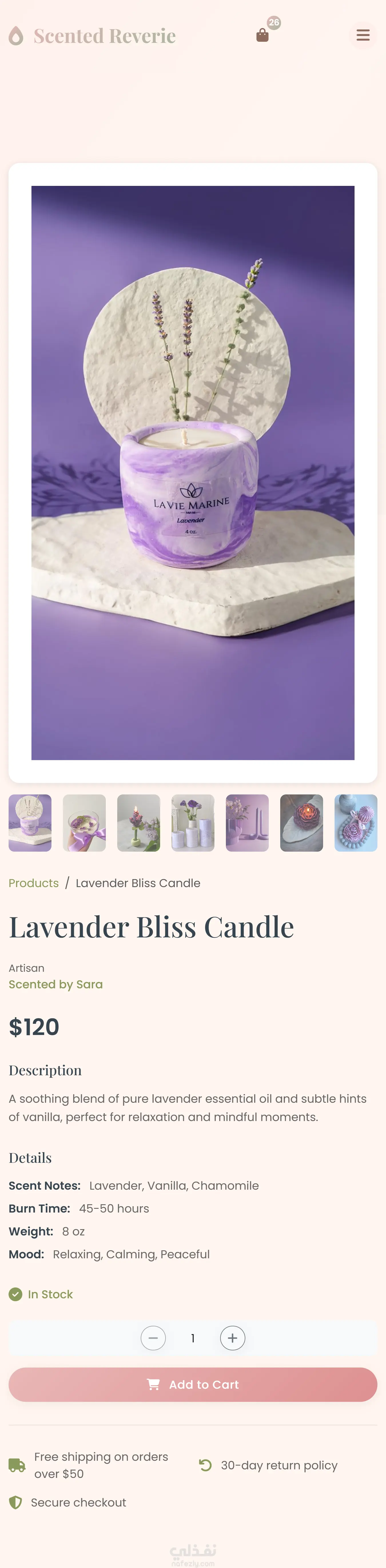 منصة تجارة إلكترونية لبيع الشموع المعطّرة المصنوعة يدويًا، تم تطويرها باستخدام Angular 18 بواجهة أنيقة ومتجاوبة وتجربة استخدام سلسة.