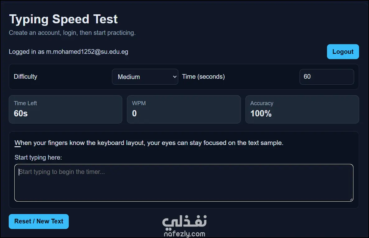 تطوير تطبيق ويب لقياس سرعة ودقة الكتابة باحترافية.