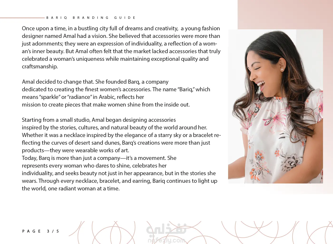 يُمكن وصف هذا العمل بأنه ليس مجرد تصميم للإكسسوارات، بل هو عملية خلق لتفاصيل تُكمل الحكاية الشخصية لكل فرد. يعتمد العمل على فلسفة ترى في الإكسسوارات تعبيراً عن الشخصية وانعكاساً للذوق الفريد، وليست مجرد إضافات عابرة. وإليك تفاصيل وصف العمل بناءً على المصادر: فلسفة التصميم: يركز العمل على تقديم أناقة عصرية تجمع بين البساطة والفخامة في آن واحد. كما يحرص المصممون على إيجاد توازن دقيق بين الحداثة والكلاسيكية، مما يمنح القطع لمسة مميزة تناسب مختلف الإطلالات. الجودة والاتقان: يولي العمل اهتماماً فائقاً بالتفاصيل الدقيقة والجودة العالية لضمان تجربة استثنائية للعميل تبدأ من اللحظة الأولى. فالهدف هو تقديم "جودة لا تُضاهى" وقيمة حقيقية تمنح كل شخص أسلوبه الخاص. التوجه الاستراتيجي (الرؤية والرسالة): يطمح العمل للوصول إلى مكانة العلامة المميزة في عالم الإكسسوارات. وتتمثل رسالته في تمكين الأفراد من إبراز تميزهم من خلال قطع مبتكرة. القيم الجوهرية للعمل: يستند العمل إلى أربع قيم أساسية هي: الأناقة في البساطة، الجودة، الابتكار في التفاصيل، والتميز في كل قطعة. باختصار، هذا العمل يقوم على مبدأ أن التفاصيل الصغيرة تصنع الفرق.