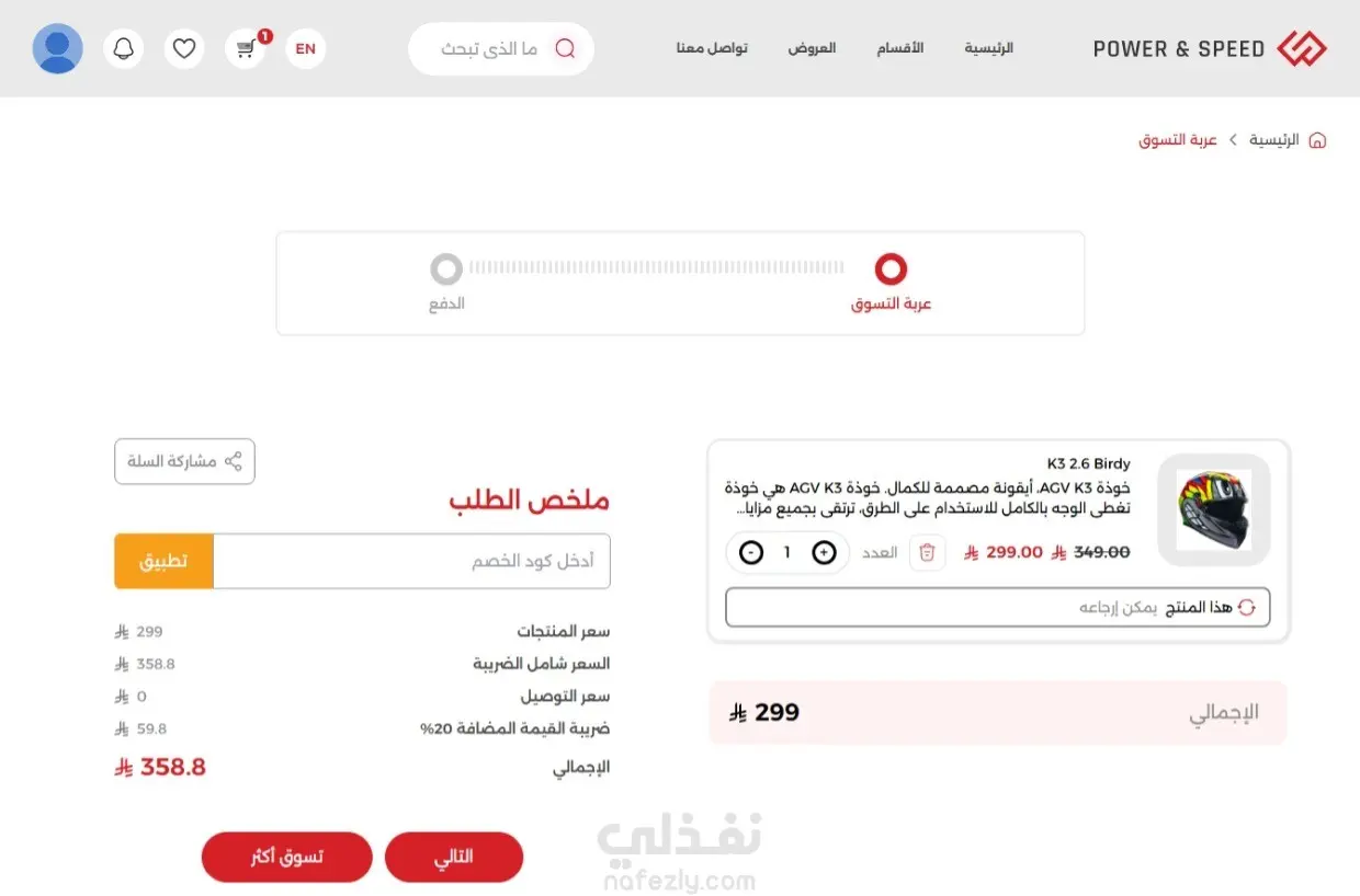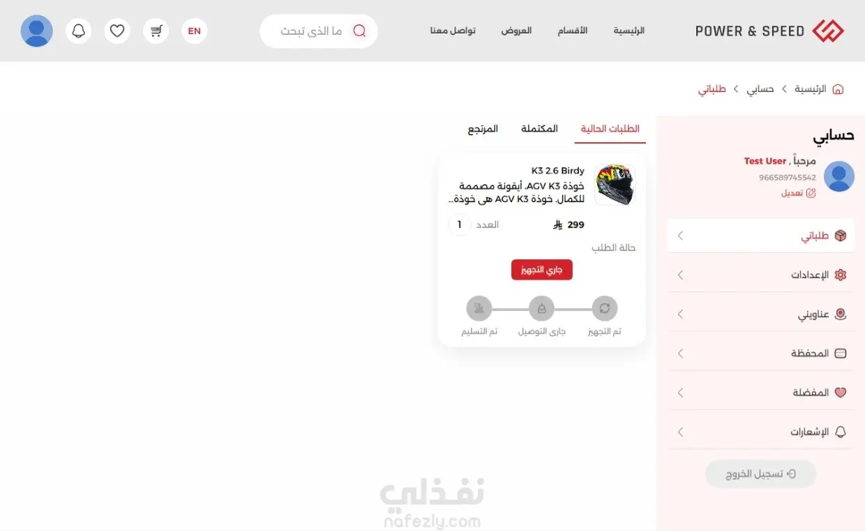 • منصة وسيطة لبيع قطع غيار الدراجات النارية، حيث تتيح للعميل الطلب من خلال تصفح المنتجات واختيار المناسب له، وبإمكانه تحديد الكمية المطلوبة من المنتج وإضافته إلى سلة الشراء الخاصة به، مع إمكانية إتمام الشراء أو متابعة التسوق. بعد ذلك يتم اختيار العنوان الخاص بالعميل وتحديد وسيلة الدفع من الوسائل المتاحة على المنصة، مع إمكانية إدخال كود خصم (خاص بالمشاهير) إن وجد، ثم دفع قيمة الطلب. • بعد تجهيز الطلب، يتم تسليمه إلى شركة الشحن، والتي تقوم بدورها بتوصيله إلى العميل.
