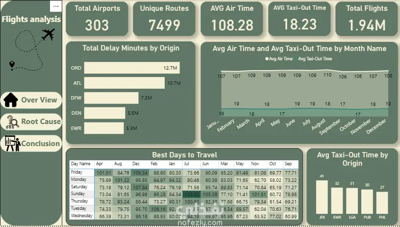 الهدف: استخراج رؤى قابلة للتنفيذ (Actionable Insights) تخص كفاءة المطارات وأفضل أوقات السفر.