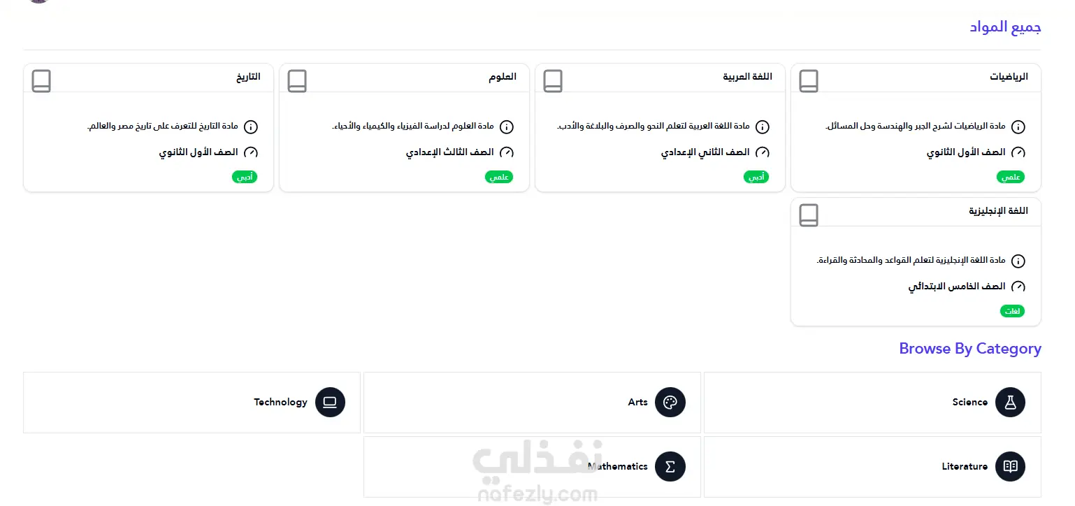 صفحات المواد (Subjects Pages)