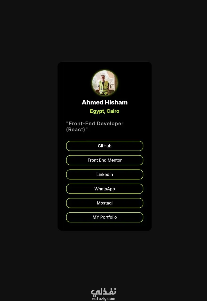 لقد صممت وطورت صفحة "روابط التواصل الاجتماعي" (Social Links Profile) بتصميم عصري واحترافى. الصفحة متجاوبة مع كل الشاشات و بأداء وكفائة عالية. حرصت على ان تكون الصفحة جذابة وملفتة واستخدمت Tailwind CSS لذلك مع React لتحقيق اعلى اداء (High-Performance).