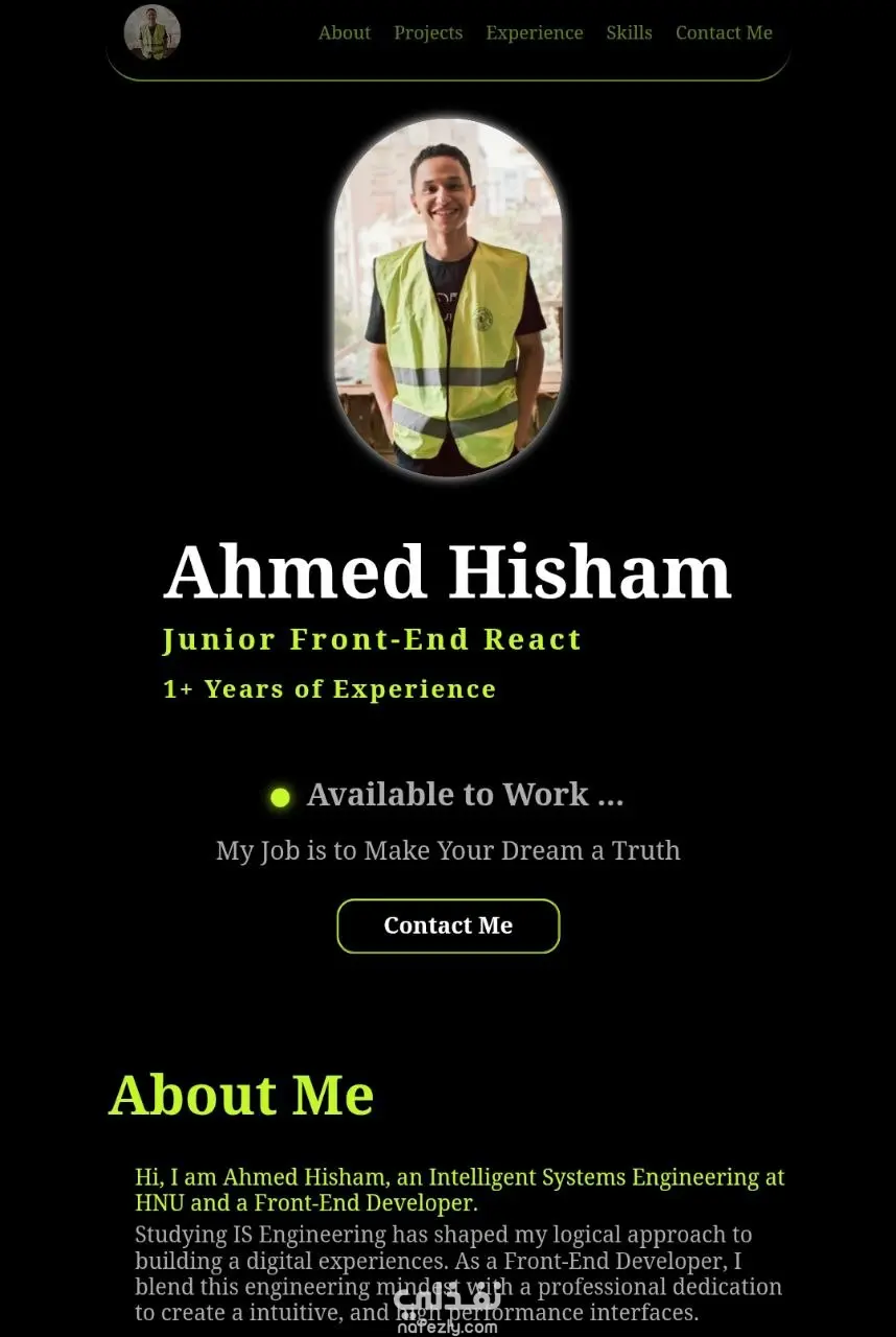 مشروع يمثل هويتي كمطور واجهات أمامية، صممته وطورته ليكون مرجعاً يستعرض مهاراتي التقنية ومشاريعي السابقة بشكل تفاعلي وعصري. يتميز ب : - الأداء العالي(High-Performance): تم بناء الموقع باستخدام React وVite لضمان سرعة استجابة فائقة. - التصميم المتجاوب(Responsive Design): تجربة مستخدم سلسة (Fluid UX) تتكيف مع جميع أحجام الشاشات. - التنظيم البرمجي: الاعتماد على Functional Components وHooks لكتابة كود نظيف وقابل للصيانة. - الجمالية البصرية: تطبيق واجهة مستخدم (UI) تعتمد على الألوان الاحترافية (مثل الأسود والسيان) لتعزيز انطباع الثقة والتقنية.