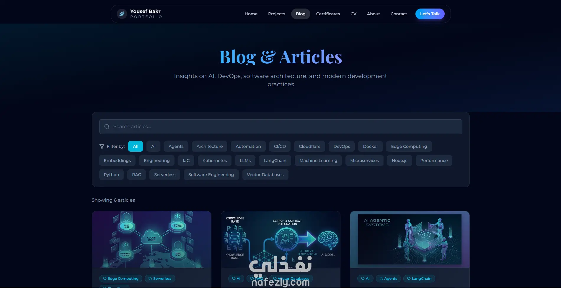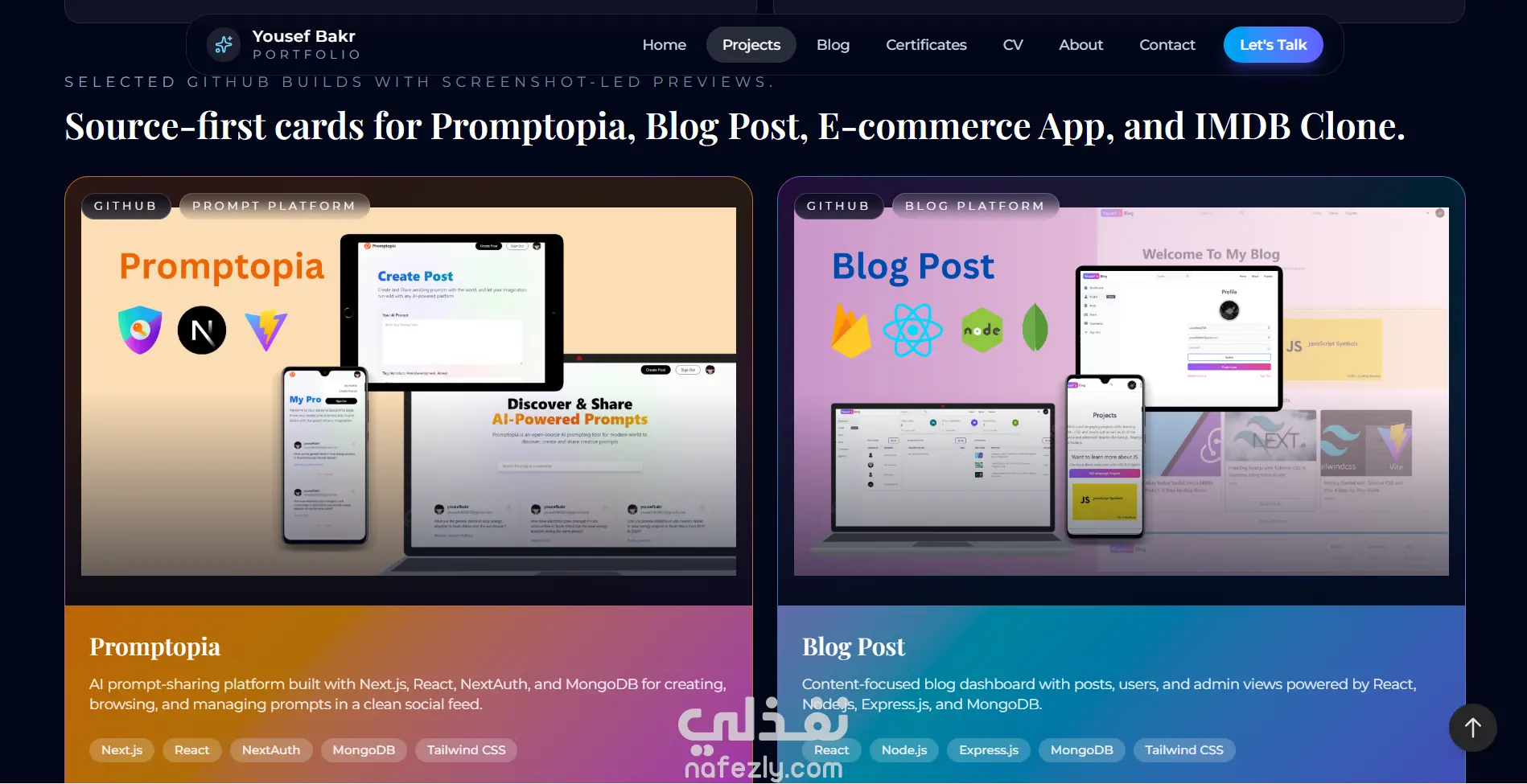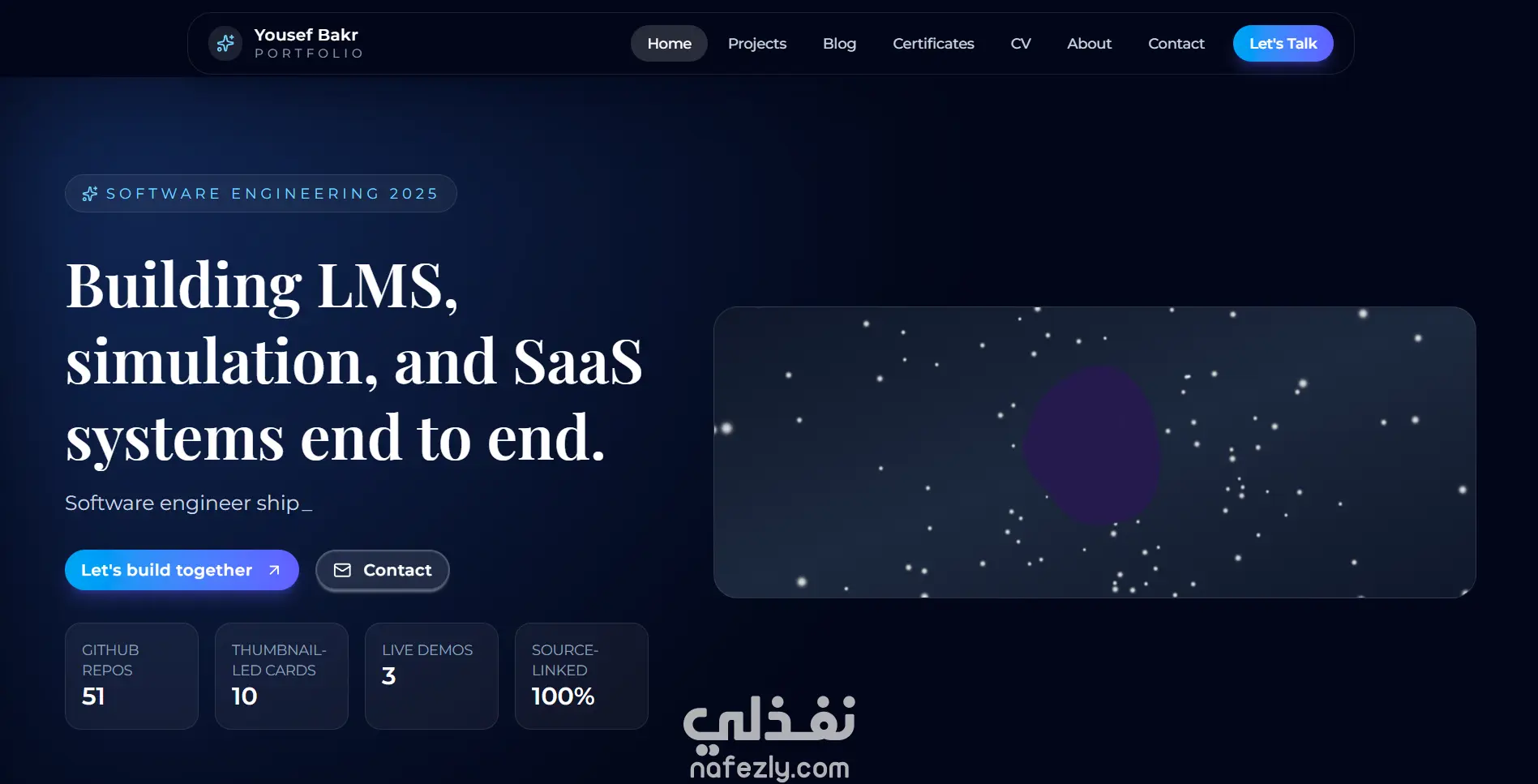 قمت ببناء وتطوير هذا الموقع ليكون نموذجاً حياً يعكس معايير الجودة التي أتبعها في هندسة البرمجيات. الهدف لم يكن مجرد عرض معلومات، بل بناء منصة ويب عالية الأداء (High-Performance Web App) تتميز بسرعة الاستجابة الفائقة وتجربة المستخدم السلسة. التحديات والمميزات التقنية: هندسة الواجهة الأمامية: تم استخدام Next.js للاستفادة من ميزة الـ Server-Side Rendering (SSR) والـ Static Site Generation (SSG)، مما جعل الموقع يتصدر محركات البحث ويحمل في أجزاء من الثانية. الأداء والسرعة: تم تحسين الموقع ليحقق نتائج مثالية في اختبارات Google Lighthouse (أداء 98%+، و100% في الـ SEO). تجربة المستخدم (UX/UI): دمجت تقنيات Tailwind CSS مع مكتبات الأنيميشن لتقديم "Micro-interactions" تزيد من تفاعل الزائر، مع تصميم متجاوب (Fully Responsive) يعمل بكفاءة على كافة أحجام الشاشات. نظافة الكود (Clean Code): اعتمدت بنية برمجية منظمة تسهل عملية الإضافة والتطوير المستقبلي، مع فصل المكونات (Components) لضمان سهولة الصيانة. النشر والتشغيل: تم ربط الموقع ببيئة Vercel مع إعداد خط إنتاج CI/CD لضمان النشر التلقائي والمستمر لأي تحديثات برمجية.