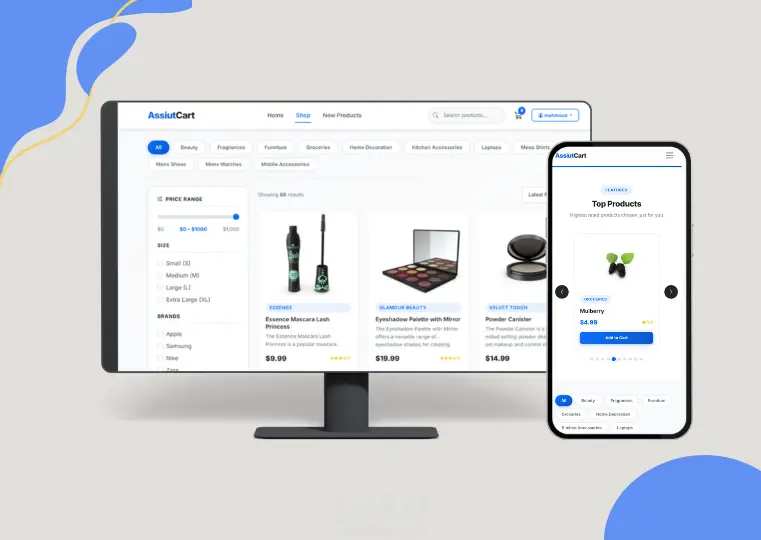 مشروع AssiutCart هو تطبيق ويب لمتجر إلكتروني قمت ببرمجته وتطويره بالكامل من الصفر كواجهات أمامية (Front-End). ركزت في هذا المشروع على تقديم تجربة مستخدم (UX) سريعة وعملية، مع تصميم عصري متجاوب (Responsive Design) يعمل بكفاءة عالية على مختلف أبعاد الشاشات سواء للهواتف الذكية أو الحواسيب. يعتمد الموقع على جلب البيانات بشكل ديناميكي عبر (API) ليعرض أكثر من 100 منتج. أهم المميزات المبرمجة في المشروع: - إمكانية إنشاء حساب جديد، تسجيل الدخول، وتسجيل الخروج بتجربة سلسة. - عرض تفاعلي وتصميم جذاب للمنتجات مع بناء (Slider) مبرمج خصيصاً لعرض المنتجات الأعلى تقييماً. - نظام متقدم للبحث السريع بالاسم، مع إمكانية تصفية المنتجات بمرونة حسب القسم (Category)، السعر، أو الماركة التجارية. - تقسيم الصفحات (Pagination): توزيع العدد الكبير من المنتجات على صفحات متعددة لتسريع عملية تحميل الموقع وضمان أعلى أداء. - إدارة عربة التسوق بحيث يمكن للمستخدم إضافة وحذف المنتجات، وتعديل الكميات، مع حفظ محتوى السلة برمجياً في المتصفح (Web Storage) حتى لا يفقدها المستخدم عند تحديث الصفحة أو الخروج منها. - صفحة مخصصة لمراجعة تفاصيل الطلب وعرض إجمالي الفاتورة بشكل دقيق قبل التأكيد. هيكلية الموقع (7 صفحات أساسية): الصفحة الرئيسية الترحيبية (Home). صفحة المتجر الشاملة للمنتجات (Shop). صفحة العرض المخصص لتفاصيل المنتج (Product Details). عربة المشتريات (Cart). تأكيد الطلب وإتمام الشراء (Checkout / Order Confirmation). صفحة تسجيل الدخول (Login). صفحة إنشاء حساب جديد (Sign Up). التقنيات والأدوات المستخدمة لتنفيذ المشروع: HTML5 CSS3 JavaScript (ES6) Bootstrap 5 DummyJSON API