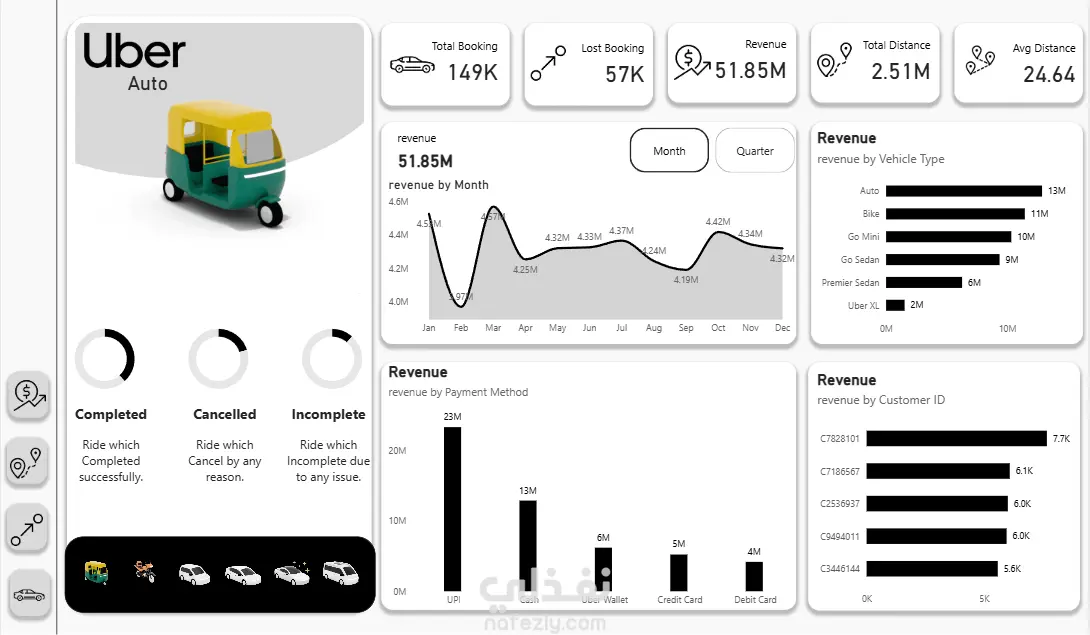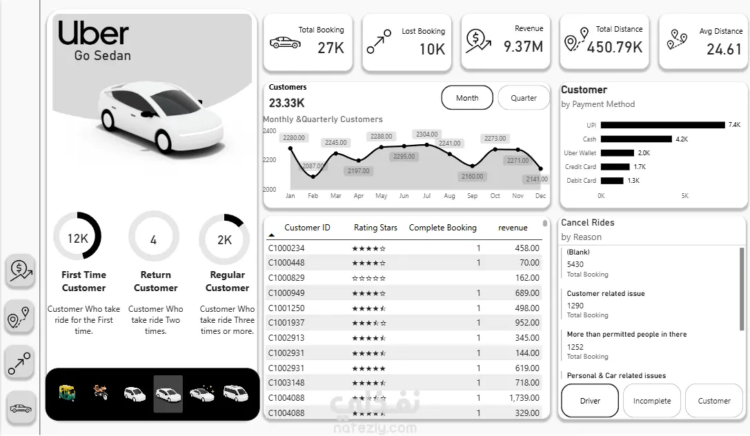 Developed a fully interactive Power BI dashboard analyzing Uber booking performance, rider behavior, vehicle-level insights, revenue trends, and location intelligence. Designed KPI-driven overview pages, time-intelligence reports (monthly & quarterly), segmentation for first-time/return riders.
